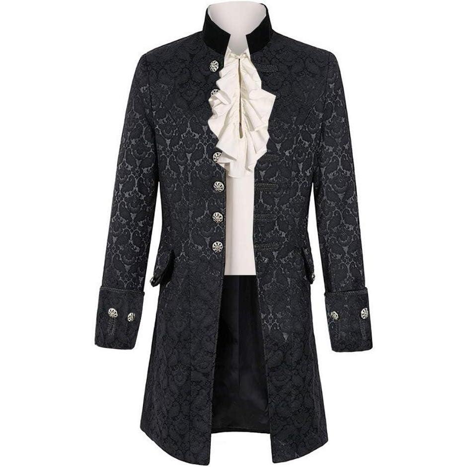 Mens Steampunk Medieval Jacket Pirate Viking Renaissance Costume Formal Tailcoat Gothic Victorian Halloween Tuxedo Coats(Black)