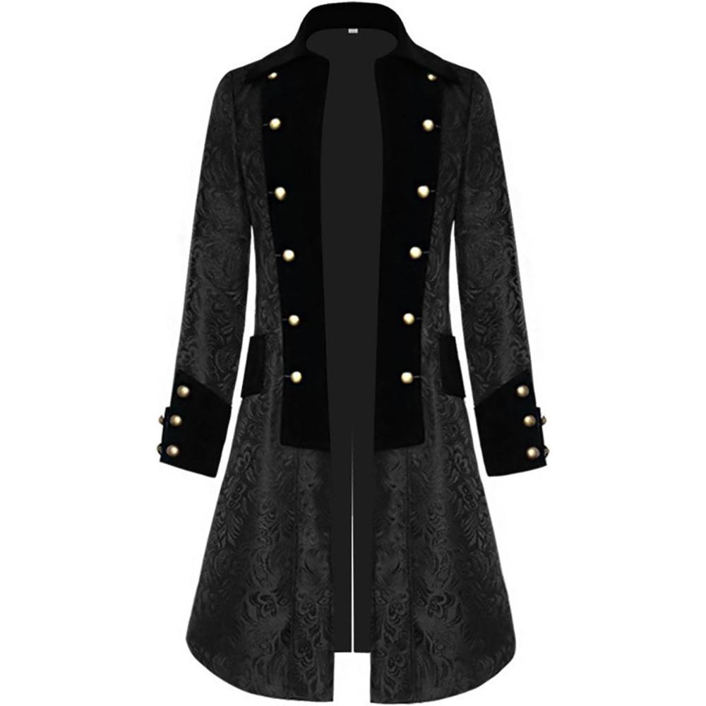 Mens Steampunk Medieval Jacket Pirate Viking Renaissance Costume Formal Tailcoat Gothic Victorian Halloween Tuxedo Coats(Y-black)