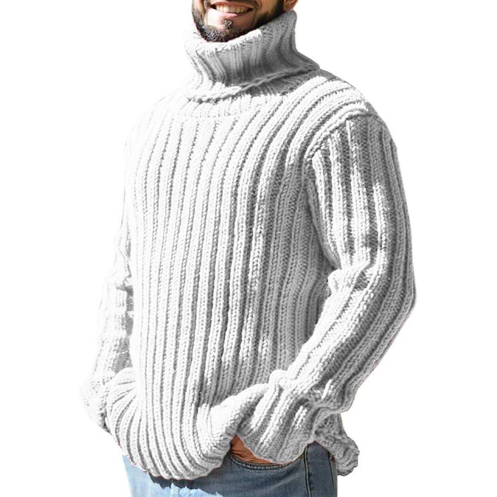 Mens Sweaters Turtleneck Cable Knitted Pullover Long Sleeve Slim Fit Chunky Casual Fall Winter Warm Cardigans(White)