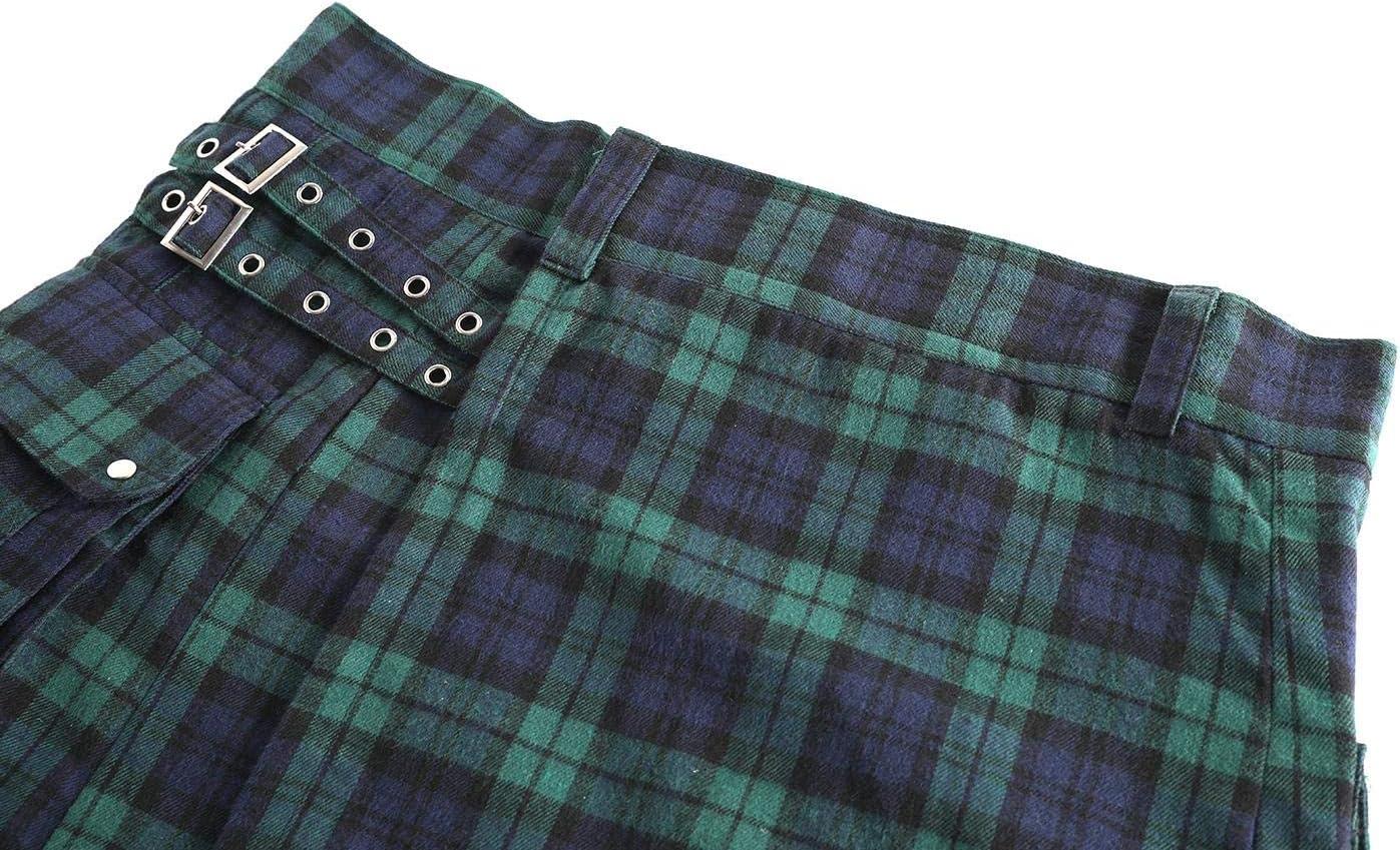 Mens Utility Kilt Pin Scottish Tartan Apparel Black & Irish Hybrid Royal Stewart Pockets Kilts(01 Green)