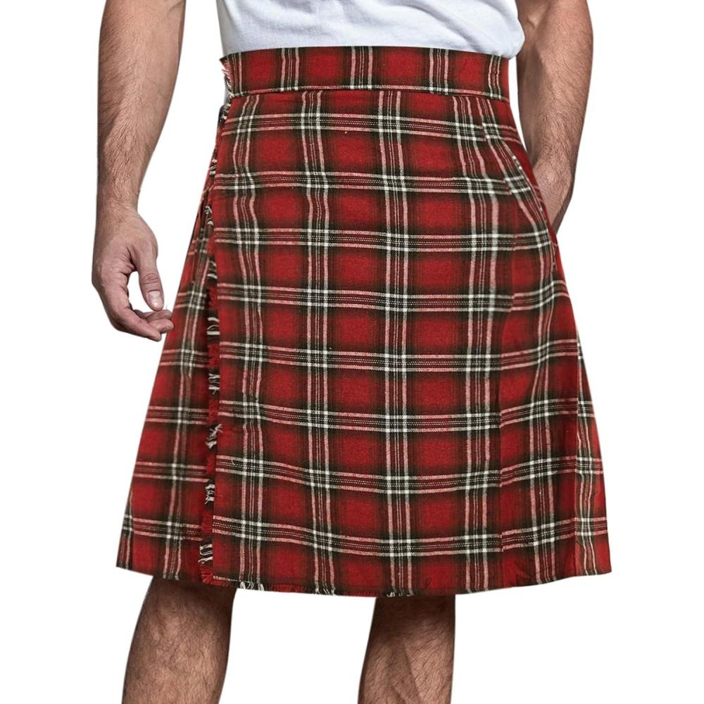 Mens Utility Kilt Pin Scottish Tartan Apparel Black & Irish Hybrid Royal Stewart Pockets Kilts(02 Red)