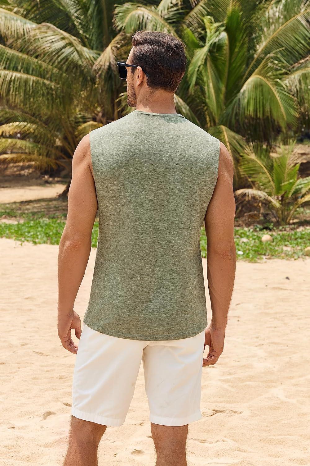 Mens Workout Cut Off Shirts Perfect Muscle Shirt Bodybuilding Tak Tops Sleeveless Gym T Shirts(Army Green)