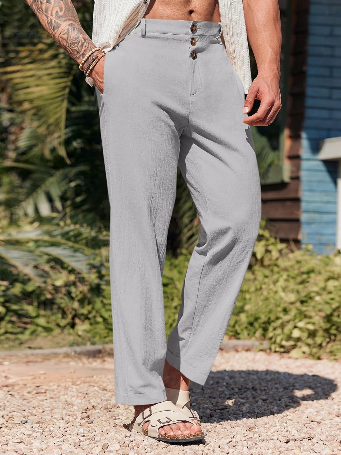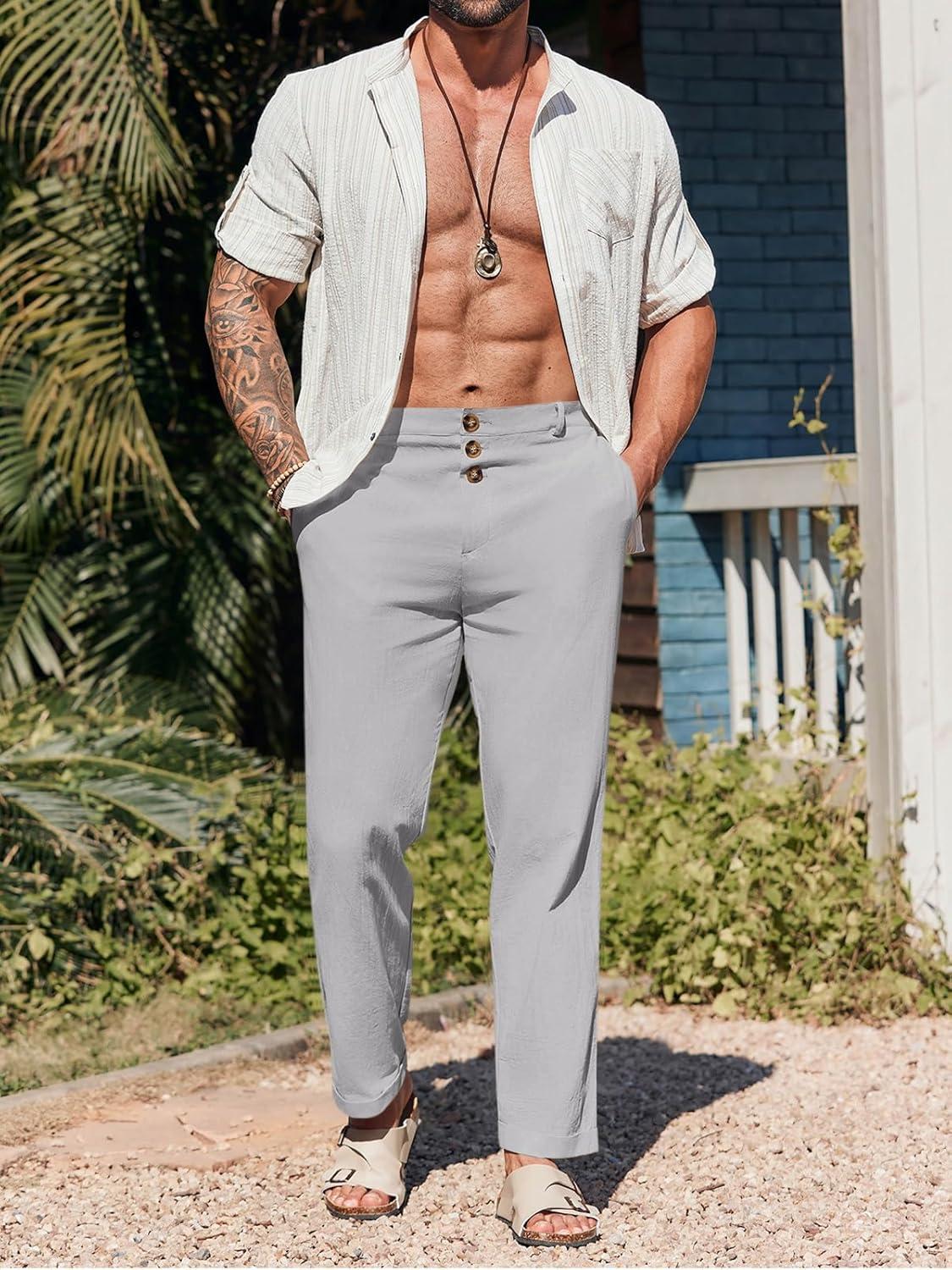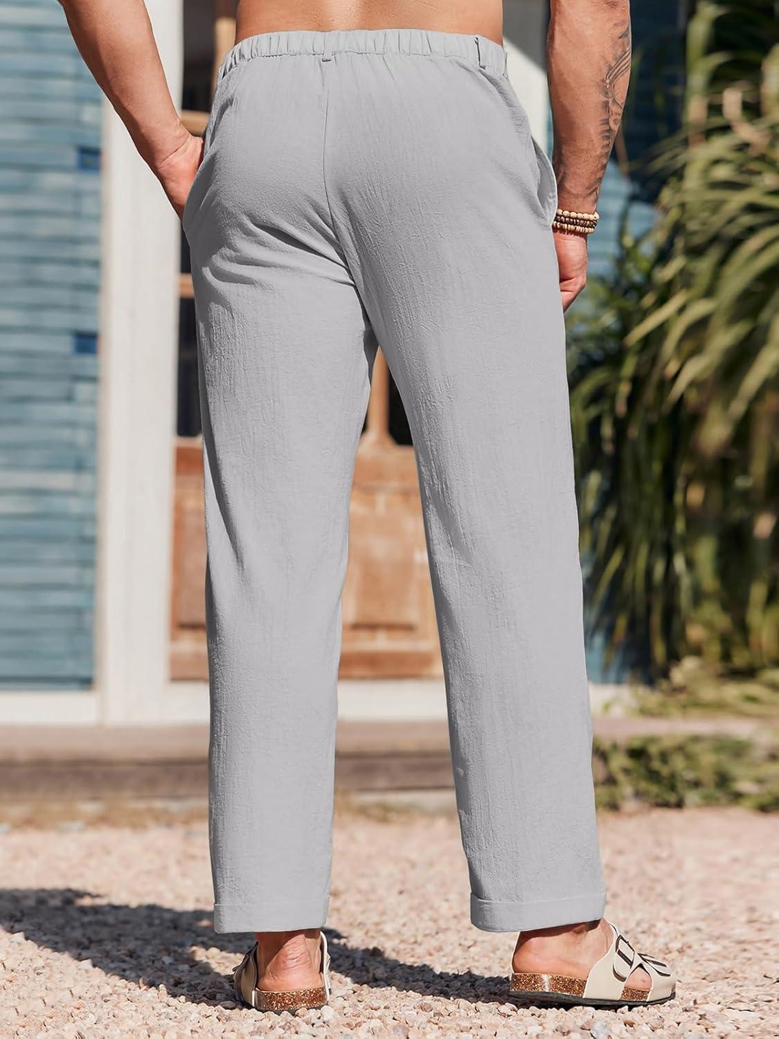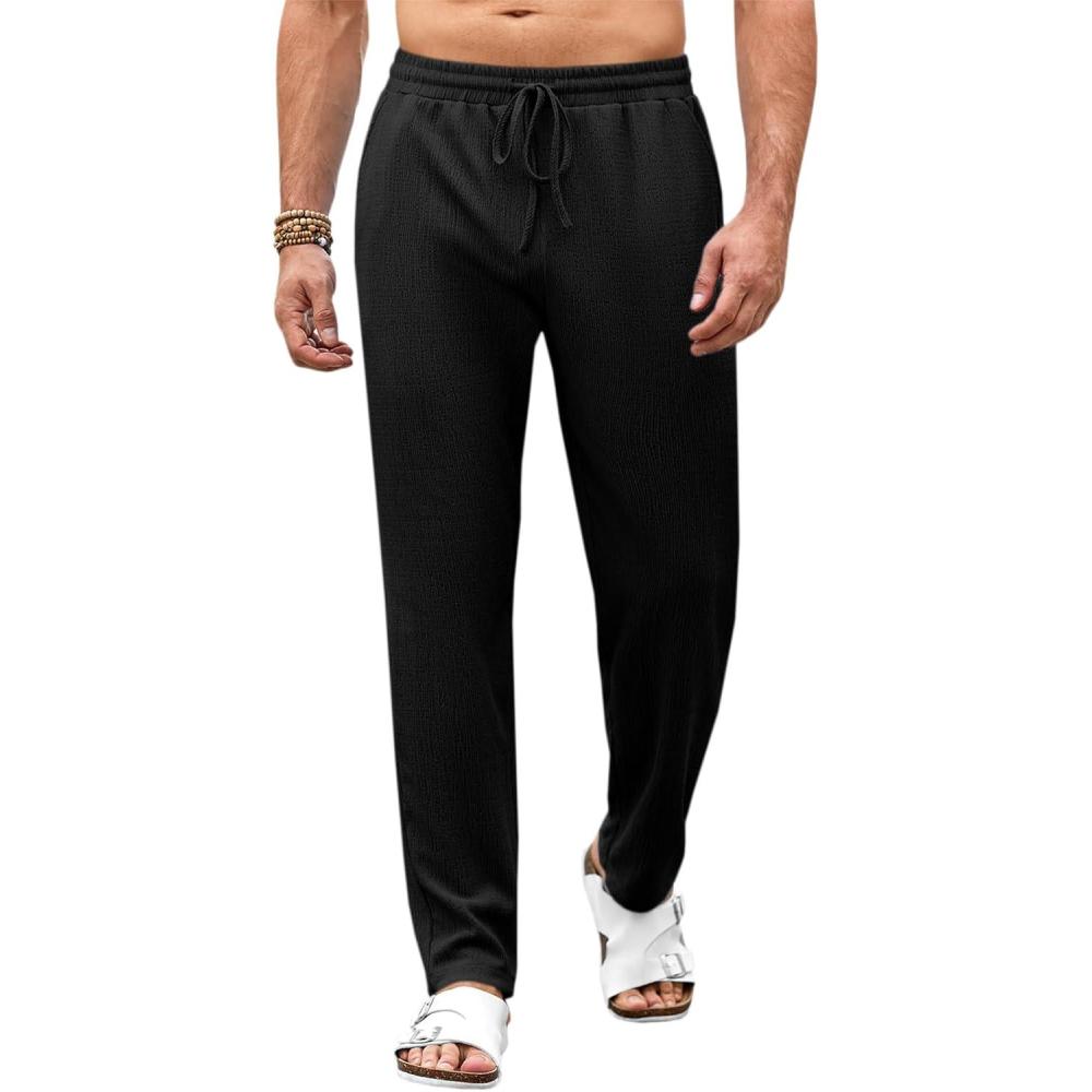 Runcati Mens Beach Elastic Waist Pants Casual Lightweight Drawstring Lounge Summer Yoga Trousers