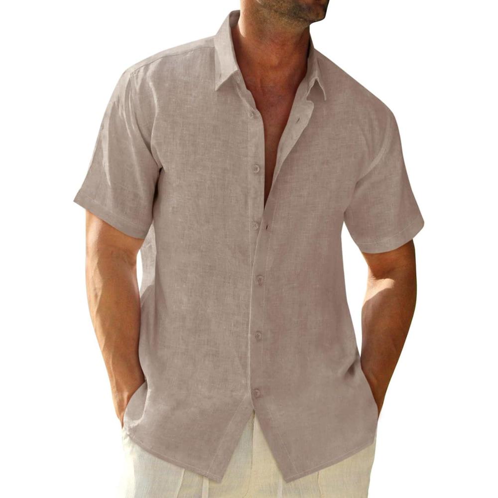 Runcati Mens Button Down Linen Shirts Short Sleeve Casual Collared Summer Beach Untucked Tops(Khaki)