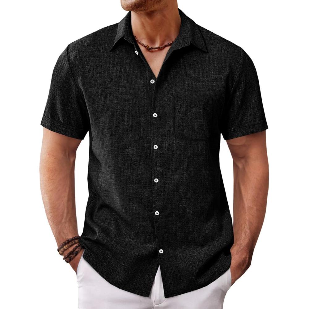 Runcati Mens Button Down Shirt Short Sleeve Casual Summer Beach Wedding Tops(Black)