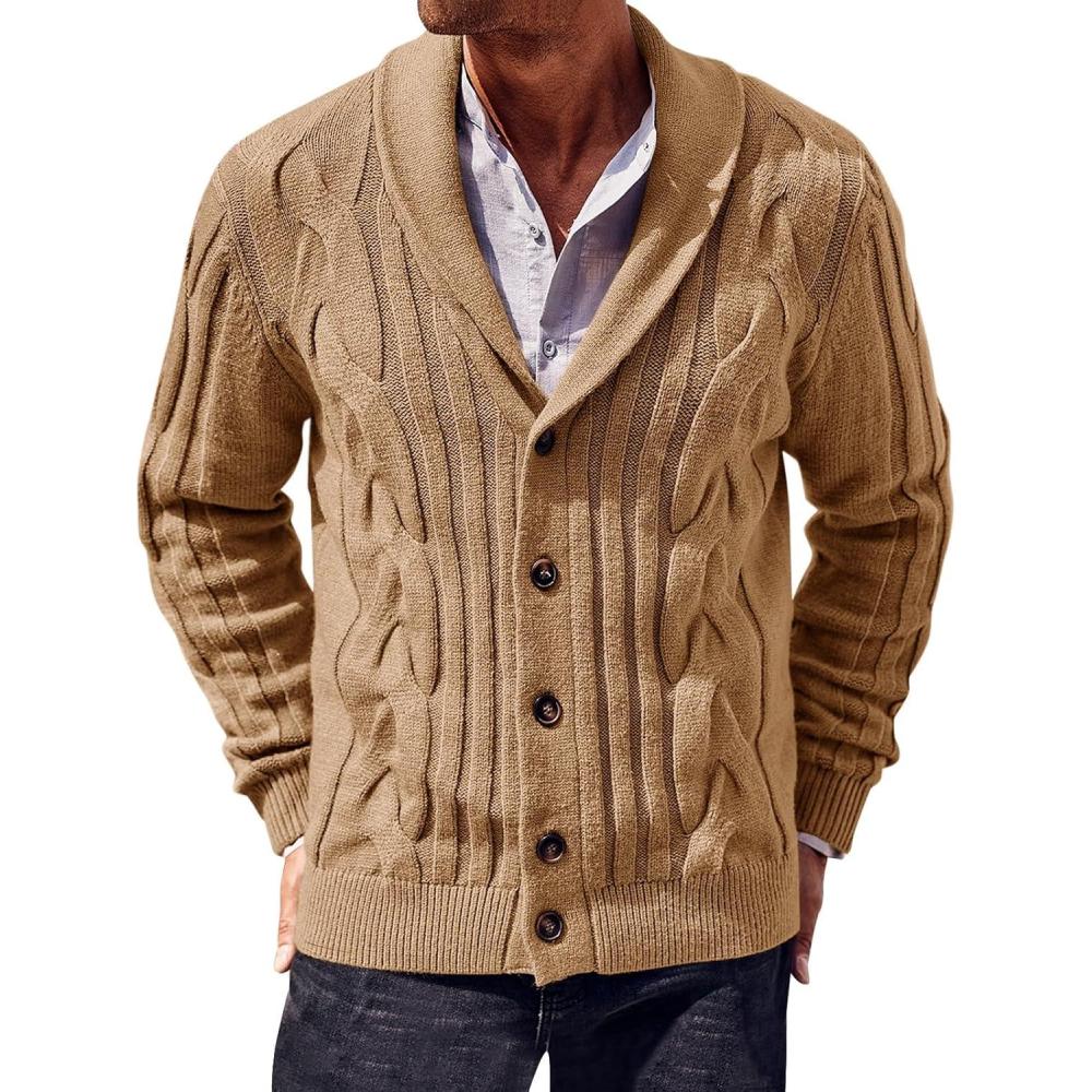 Runcati Mens Cable Knit Cardigan Sweater Shawl Collar Casual Button Down Long Sleeve Sweaters(Khaki)