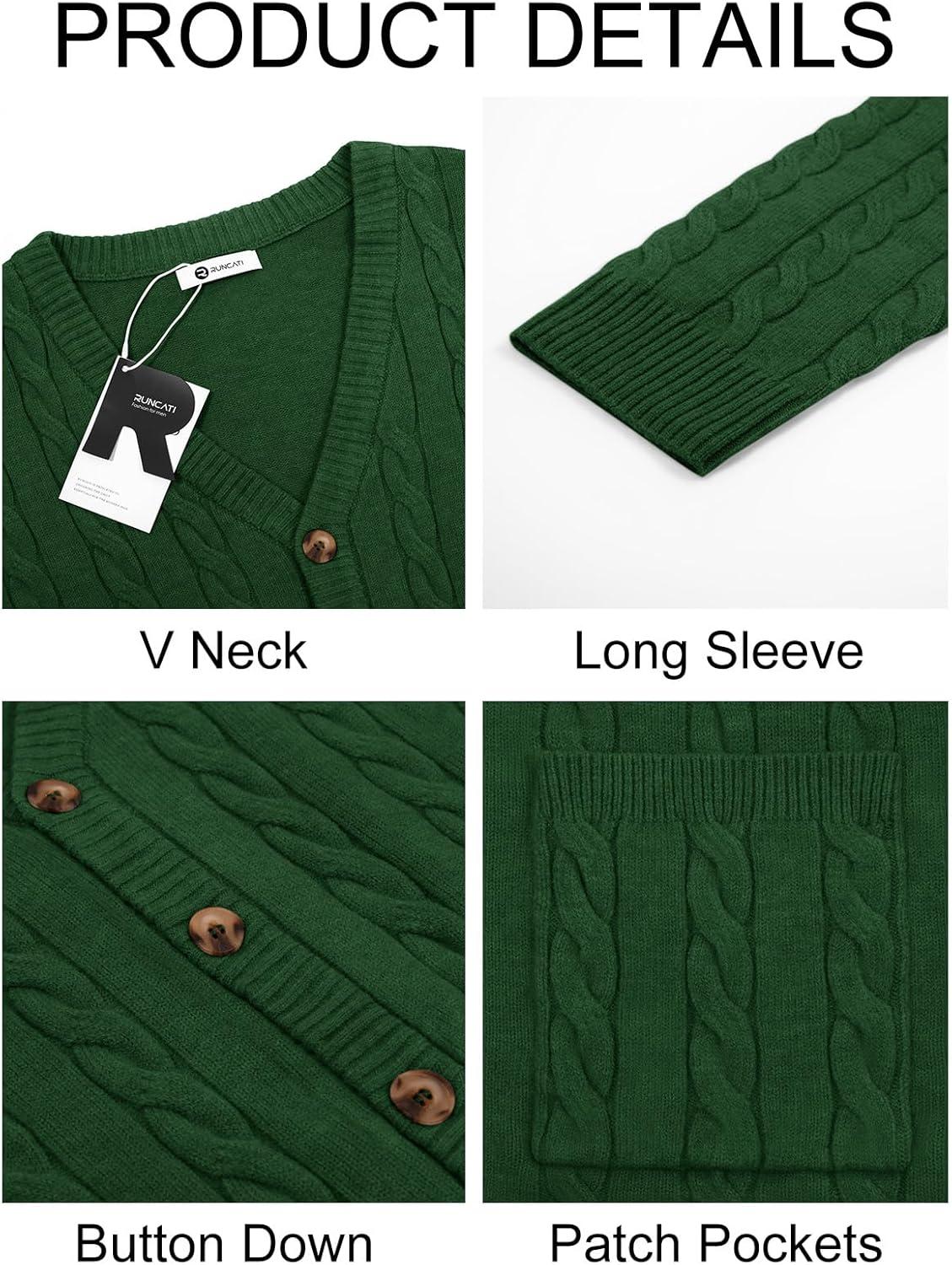Runcati Mens Cable Knit Cardigan Sweater V Neck Casual Button Down Sweaters Long Sleeve Fall Outwear with Pockets(Army Green)
