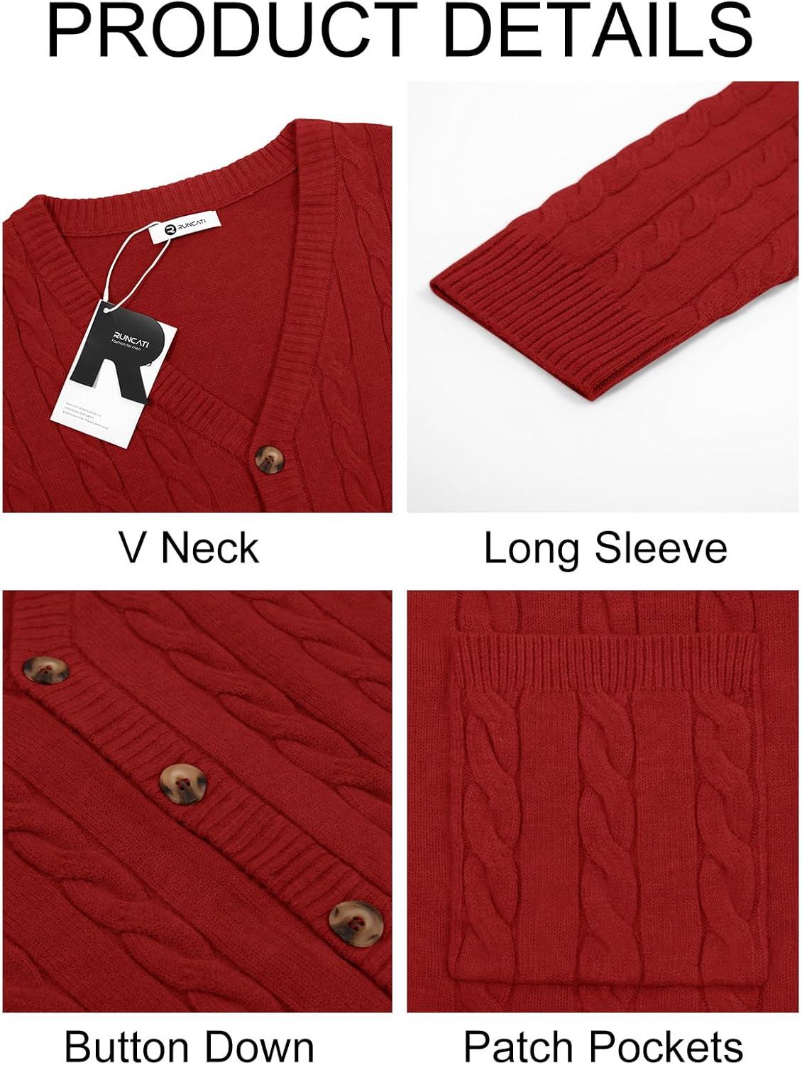 Runcati Mens Cable Knit Cardigan Sweater V Neck Casual Button Down Sweaters Long Sleeve Fall Outwear with Pockets(Burgundy)