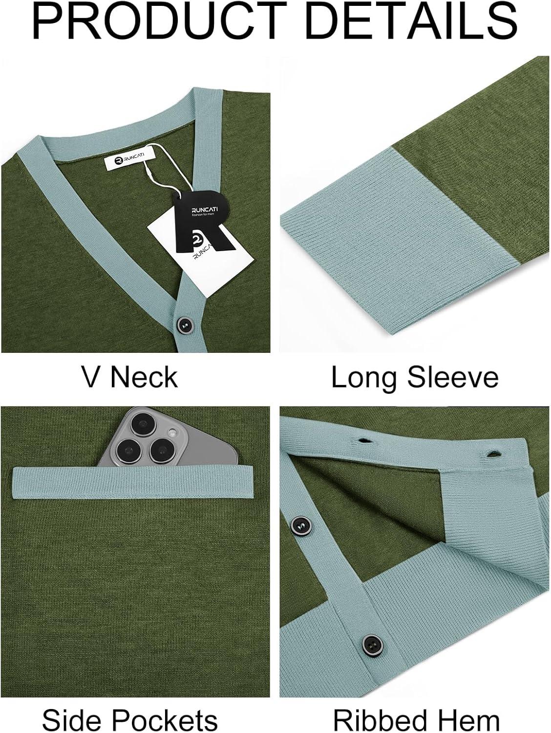 Runcati Men’s Cardigan Sweater Long Sleeve V Neck Cardigan Casul Button Down Knitted Sweaters with Pockets(Army Green)