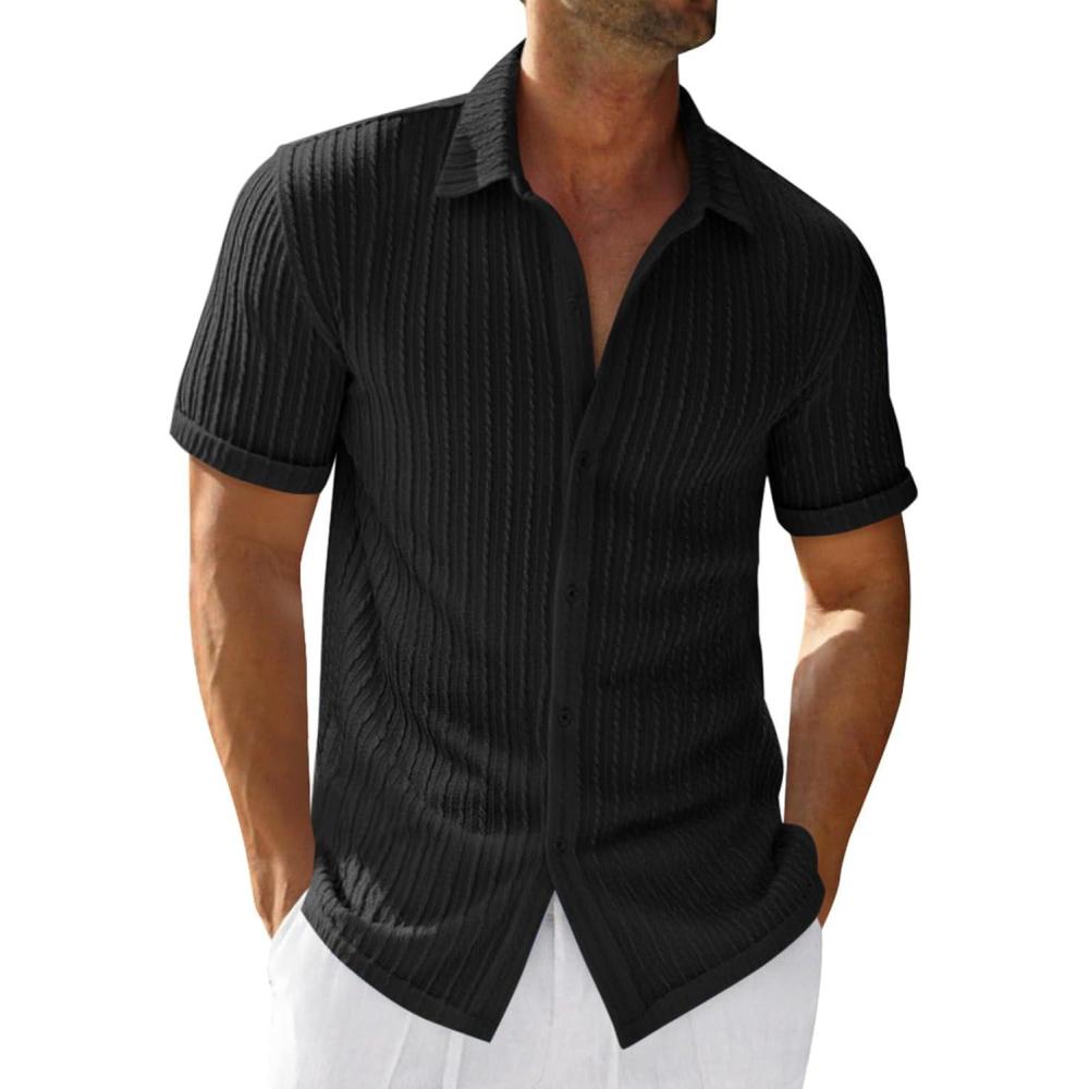 Runcati Men’s Casual Button Down Shirts Short Sleeve Textured Shirt Summer Beach Tops(Black)