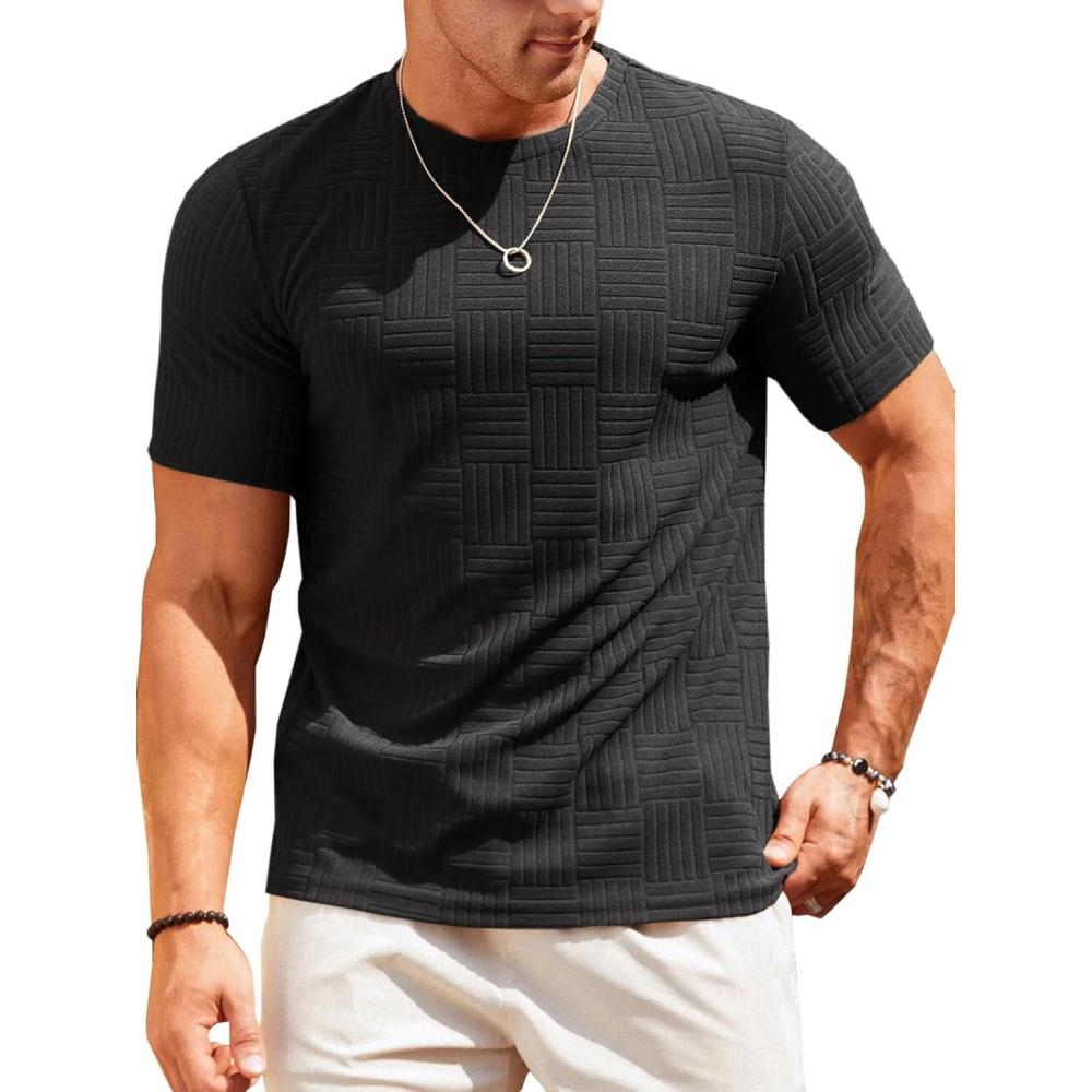Runcati Men’s Casual T-Shirts Short Sleeve Crew Neck Summer Stretchy Shirt Textured Jacquard Tops(Black)
