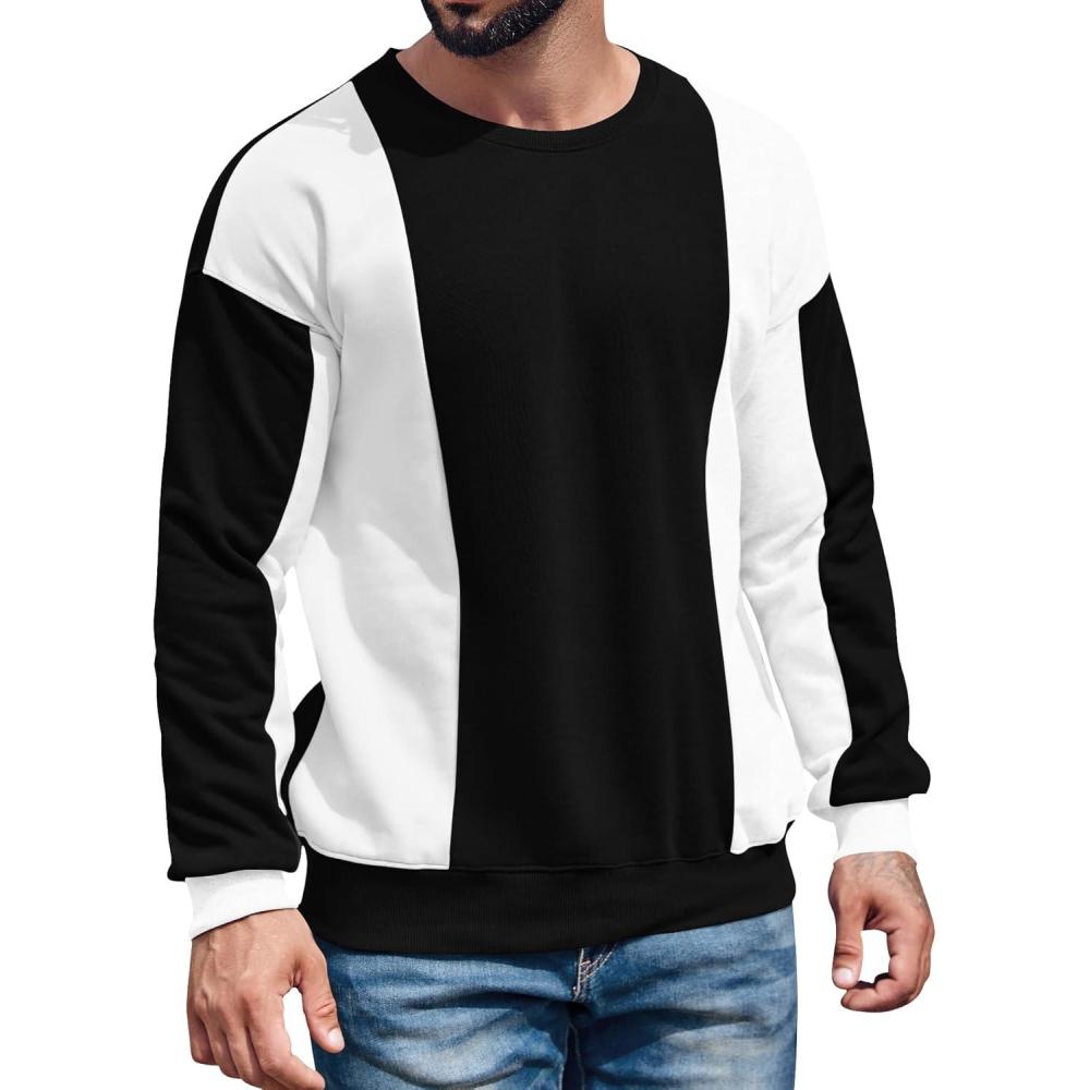 Runcati Mens Color Block Sweatshirt Pullover Crewneck Long Sleeve Fleece Casual Ribbed Patchwork Fall Tops(Black)