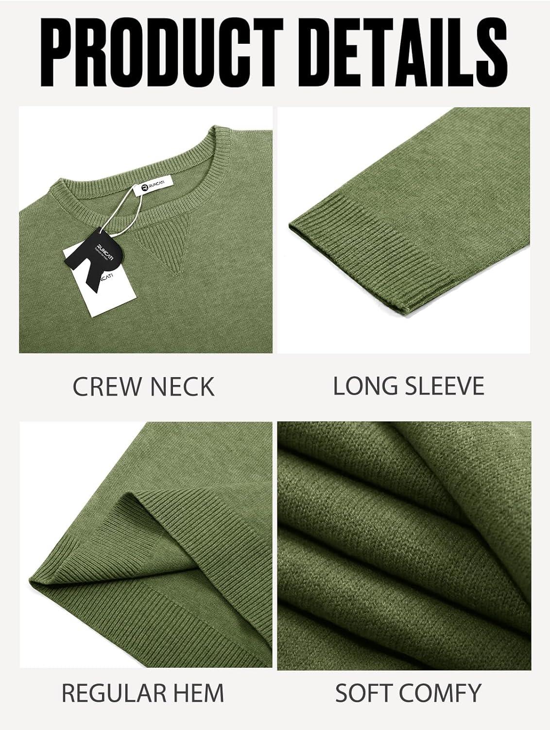 Runcati Mens Crewneck Sweaters Casual Knit Lightweight Dress Sweater Long Sleeve Slim Fit Fall Winter Pullover(Army Green)