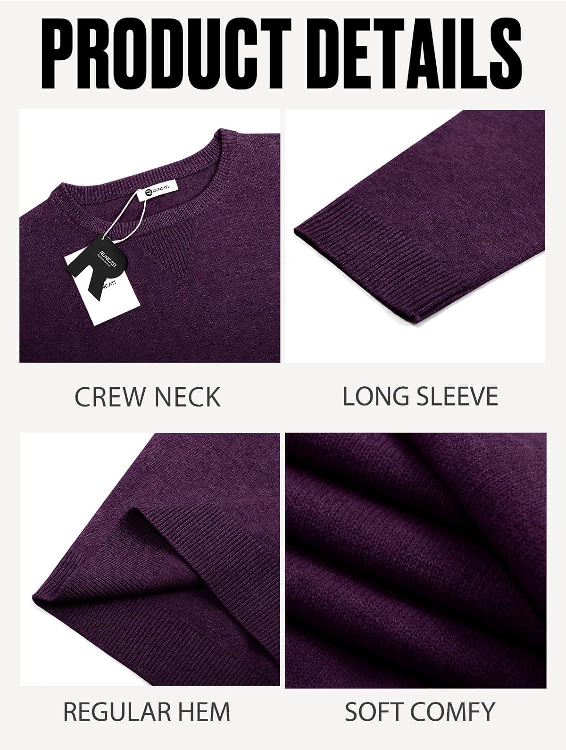 Runcati Mens Crewneck Sweaters Casual Knit Lightweight Dress Sweater Long Sleeve Slim Fit Fall Winter Pullover(Dark Purple)