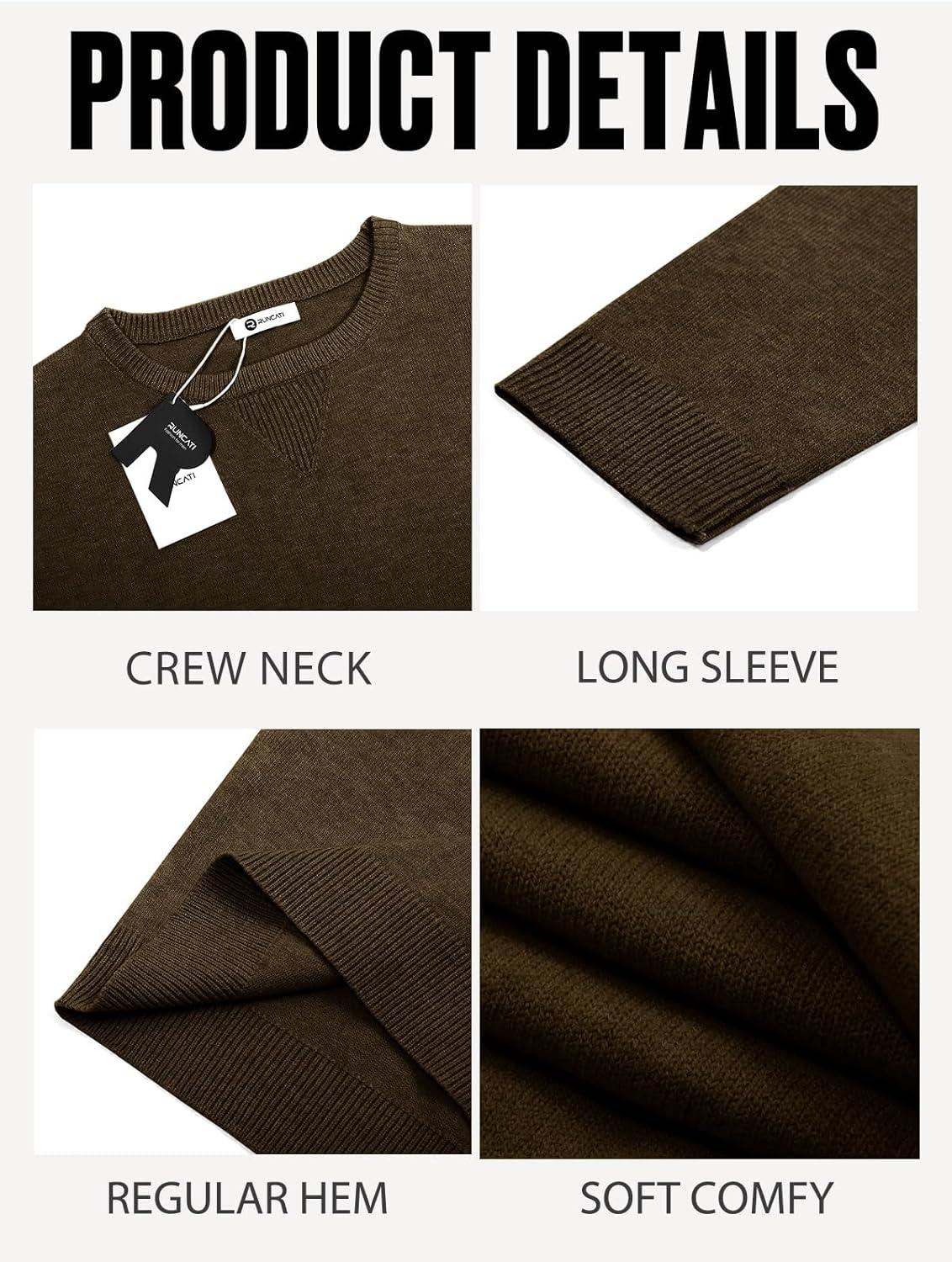 Runcati Mens Crewneck Sweaters Casual Knit Lightweight Dress Sweater Long Sleeve Slim Fit Fall Winter Pullover(Deep Coffee)