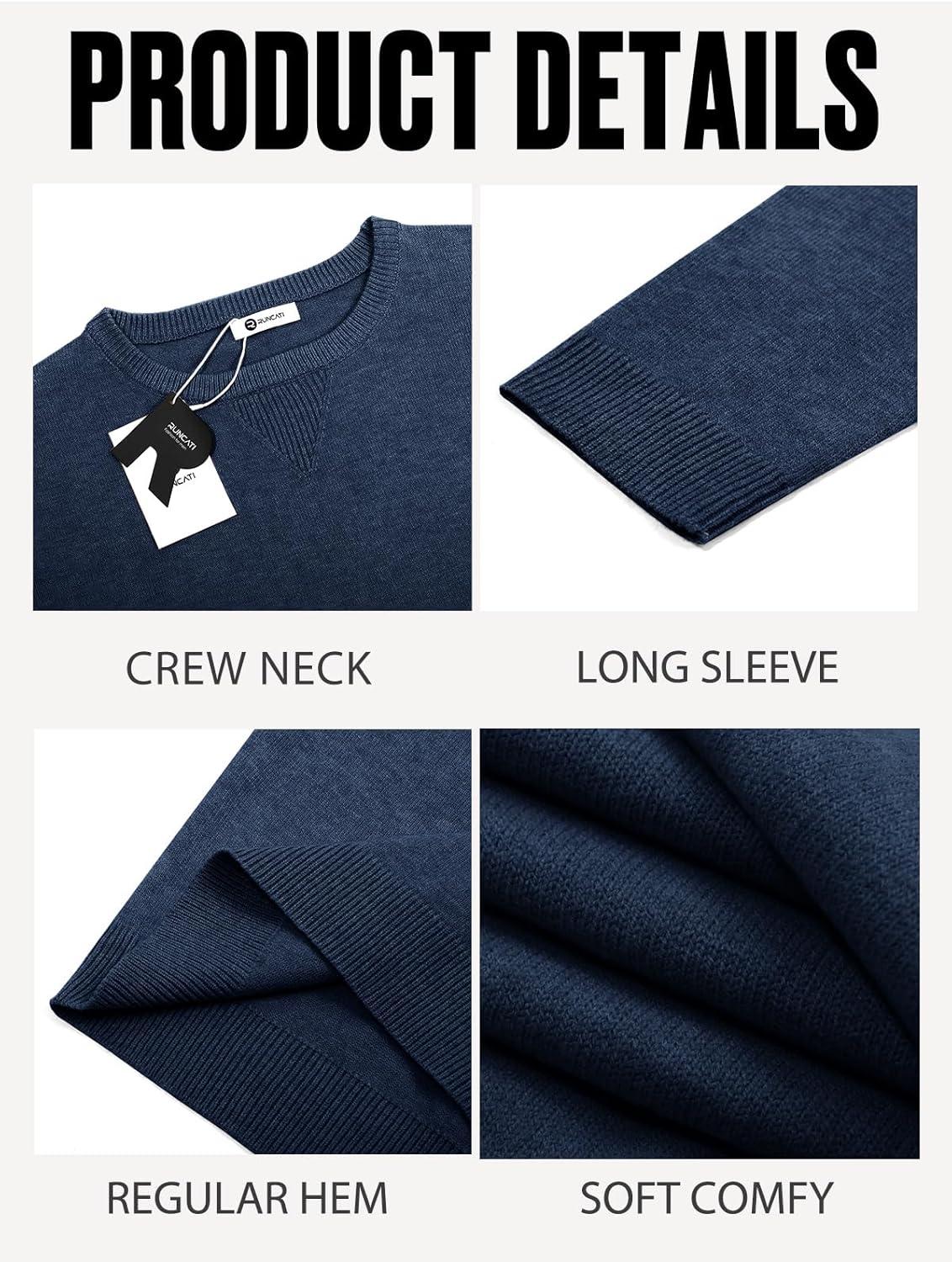 Runcati Mens Crewneck Sweaters Casual Knit Lightweight Dress Sweater Long Sleeve Slim Fit Fall Winter Pullover(Navy)