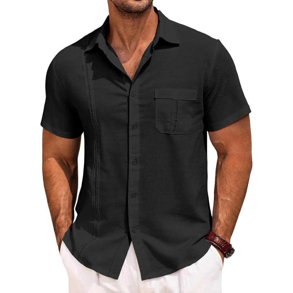 Runcati Mens Cuban Guayabera Shirts Button Down Short Sleeve Shirt Casual Mexican Summer Beach Wedding Tops with Pocket(Black)