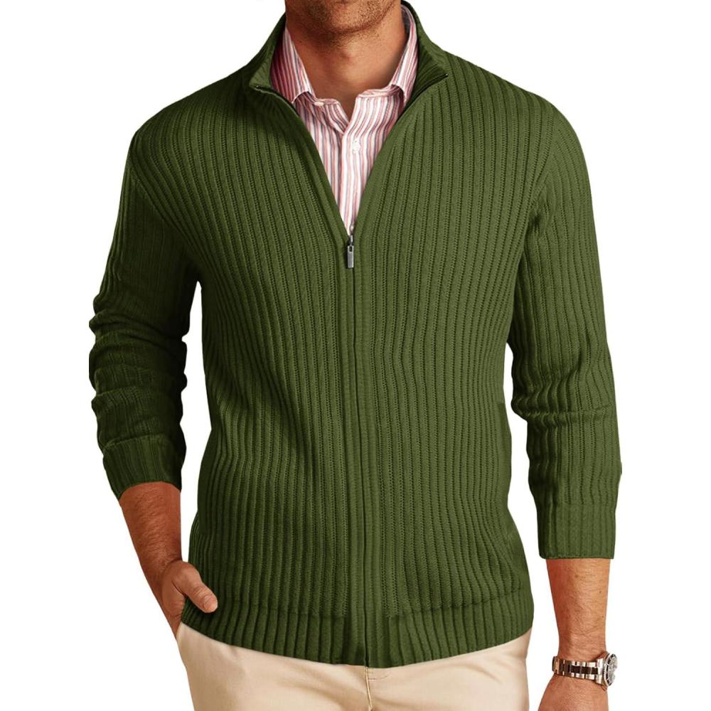 Runcati Mens Full Zip Cardigan Sweater Casual Mock Neck Ribbed Knitted Winter Chunky Sweaters(Army Green)