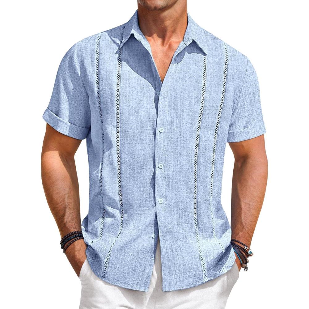 Runcati Mens Guayabera Shirts Short Sleeve Casual Cuban Linen Shirt Button Down Beach Summer Mexican Shirts(Sky Blue)