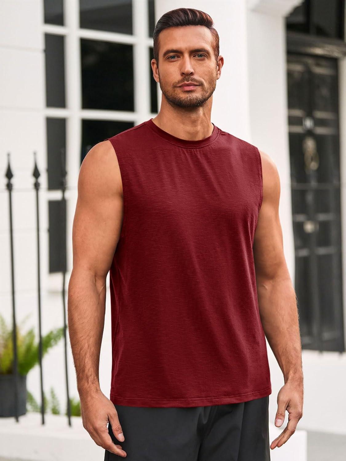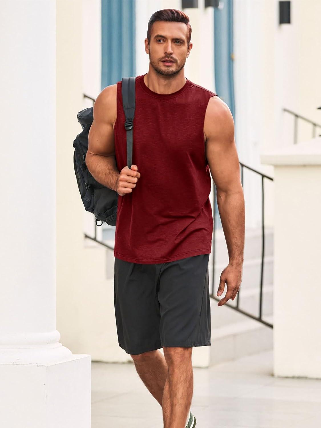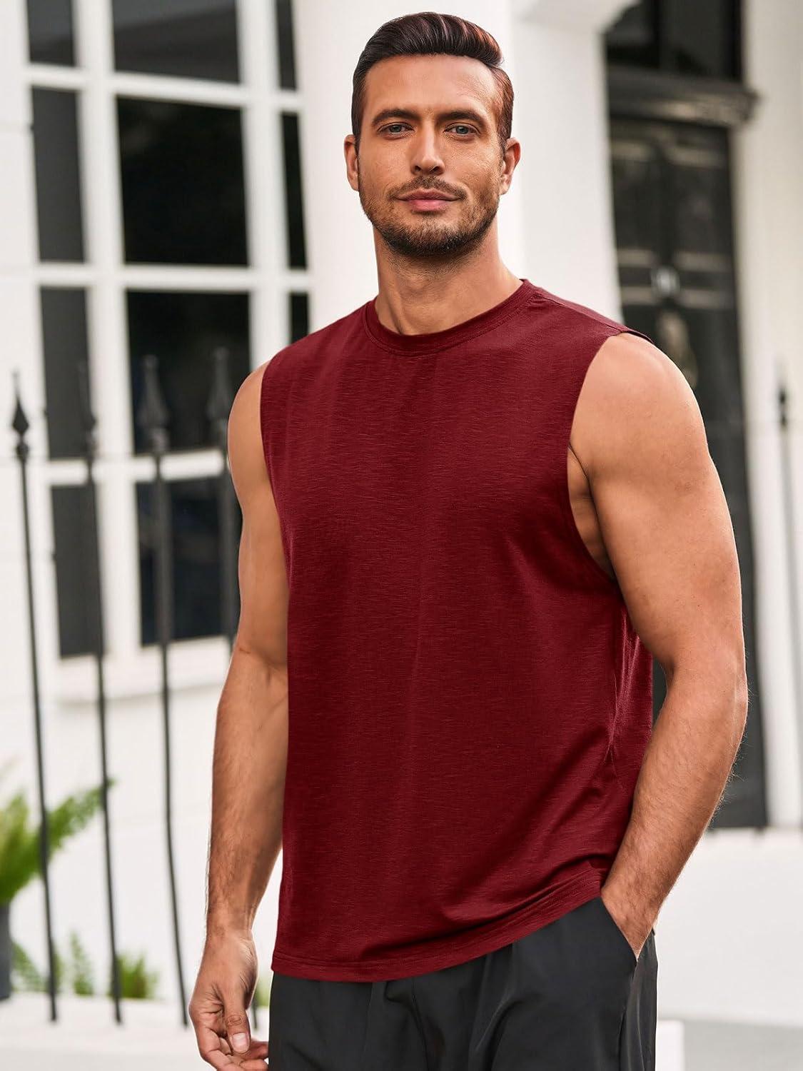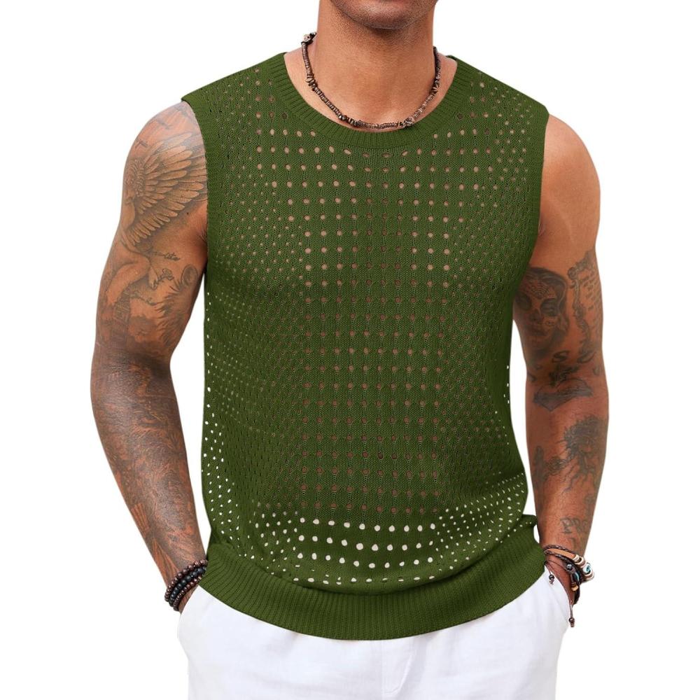 Runcati Mens Knit Sleeveless Tank Tops Casual Hollow Out T Shirts Beach Summer See Through Tops(Army Green)