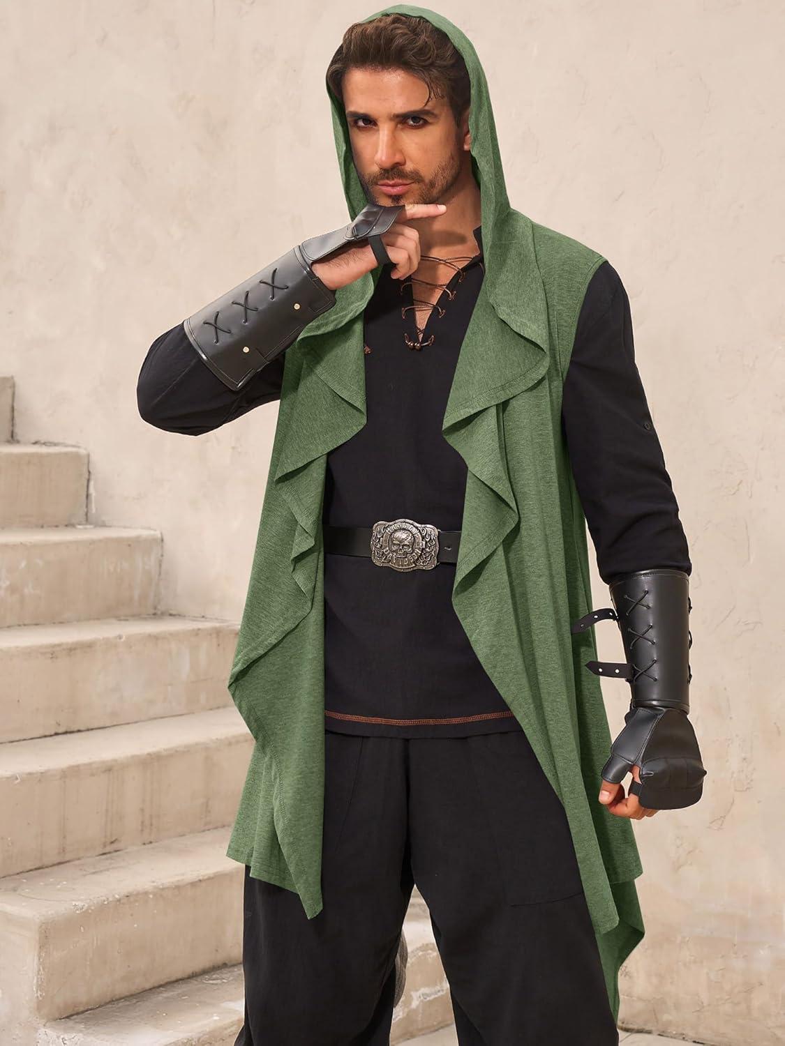 Runcati Mens Medieval Costume Halloween Renaissance Tunic Viking Knight Pirate Warrior LARP Shirts(Brown)