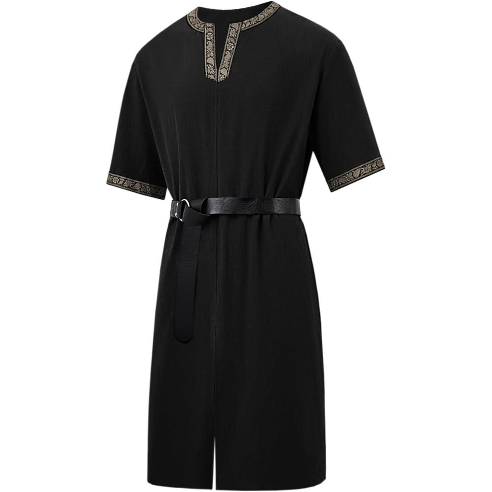 Runcati Mens Medieval Pirate Costume Tunic Renaissance Knight Warrior Viking LARP Halloween Tops(A-black)