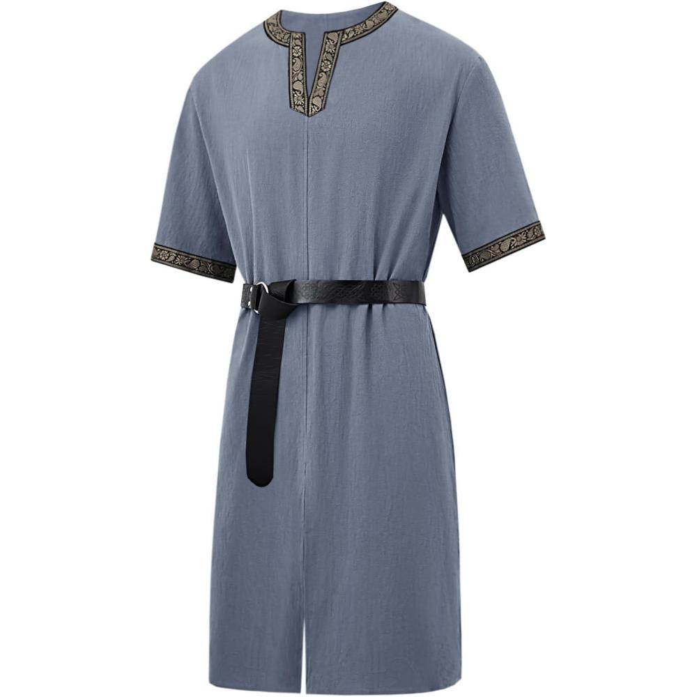 Runcati Mens Medieval Pirate Costume Tunic Renaissance Knight Warrior Viking LARP Halloween Tops(A-grey)