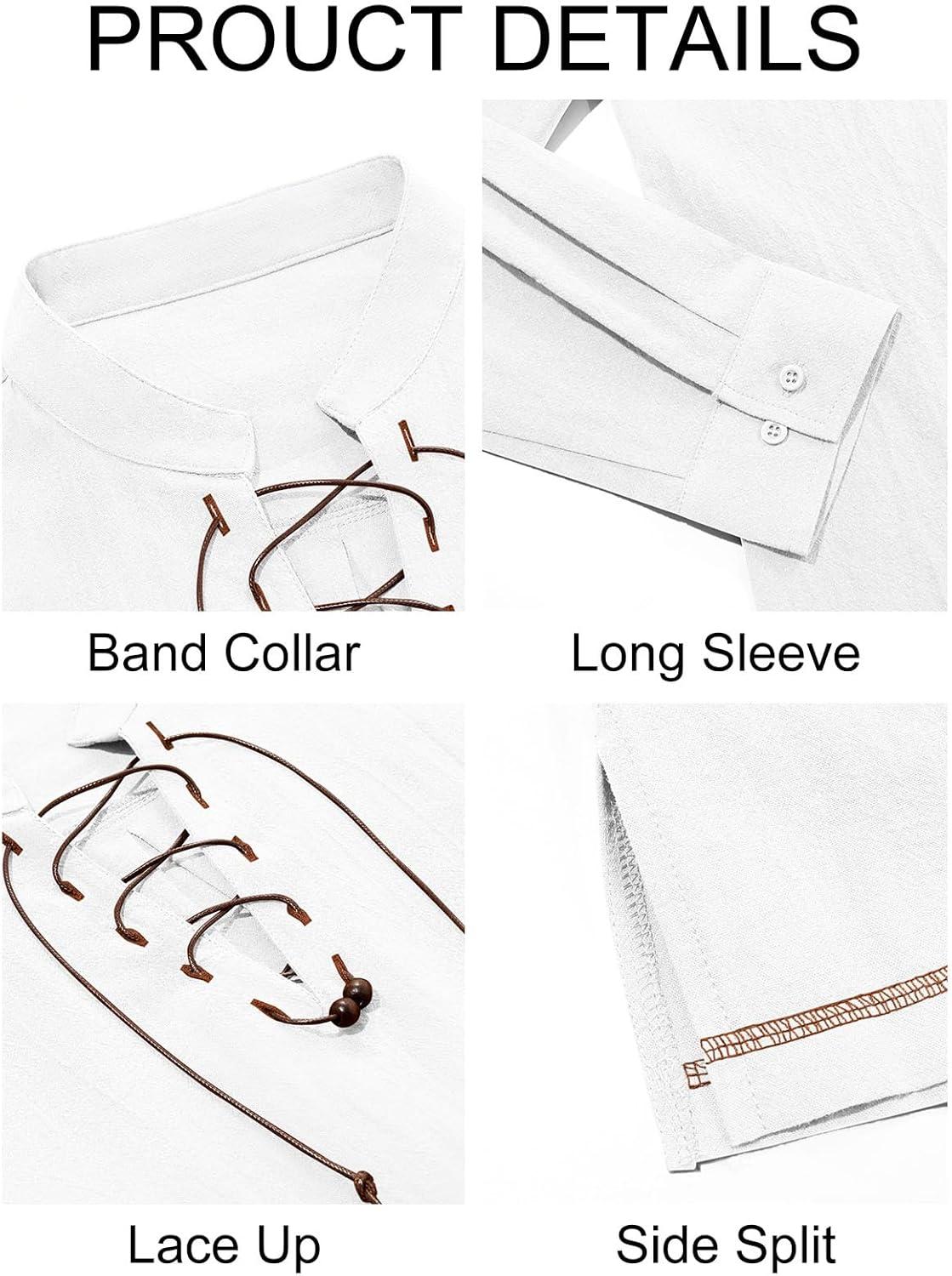 Runcati Mens Medieval Pirate Shirt Renaissance Viking Long Sleeve Shirts Lace Up Scottish Halloween Costume Tops(White)