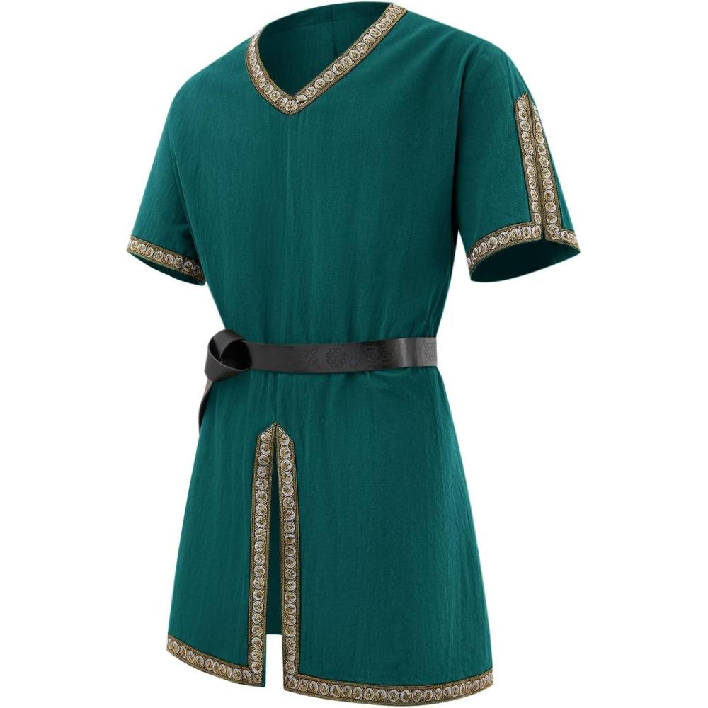 Runcati Mens Medieval Pirate Tunic Renaissance Viking Knight Costume Linen Short Sleeve LARP Halloween Tops(Dark Green)
