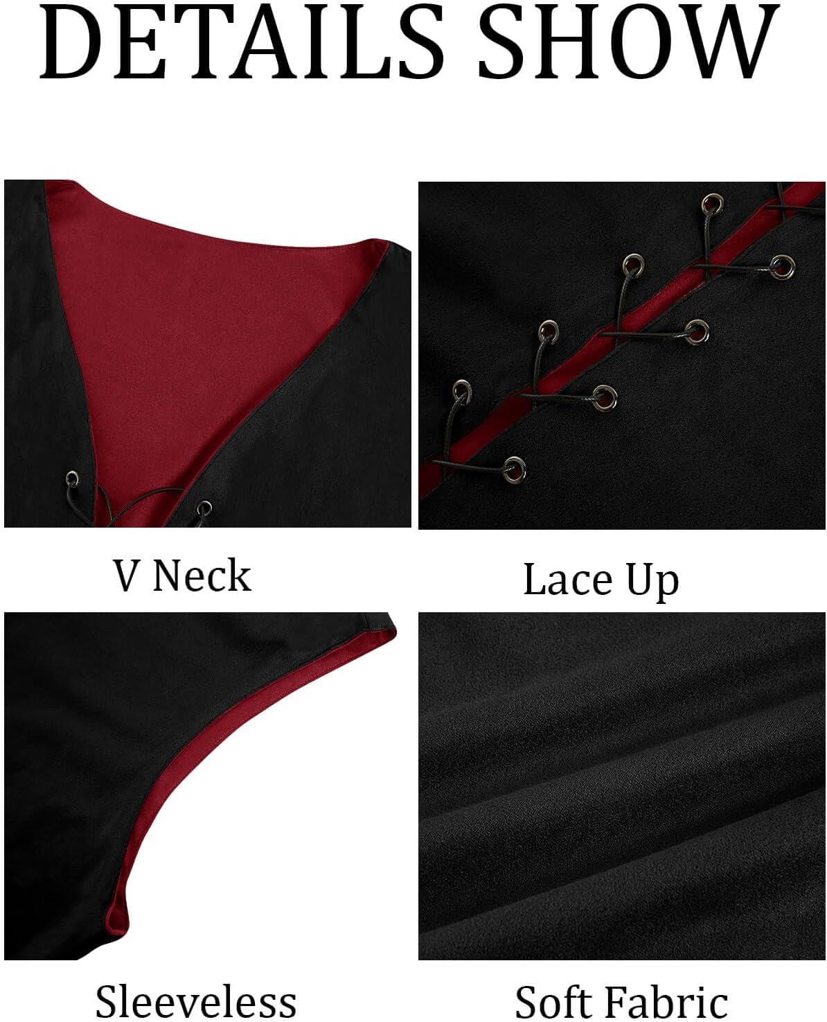 Runcati Mens Medieval Renaissance Vest Pirate Gothic Halloween Costume Suede Lace Up Reversible Waistcoat(Black)