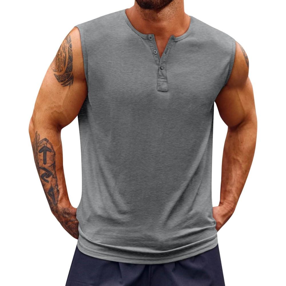 Runcati Mens Muscle Tank Tops Sleeveless Workout Gym Slim Fit Henley Shirt Casual Basic Summer Beach Tops(Grey)