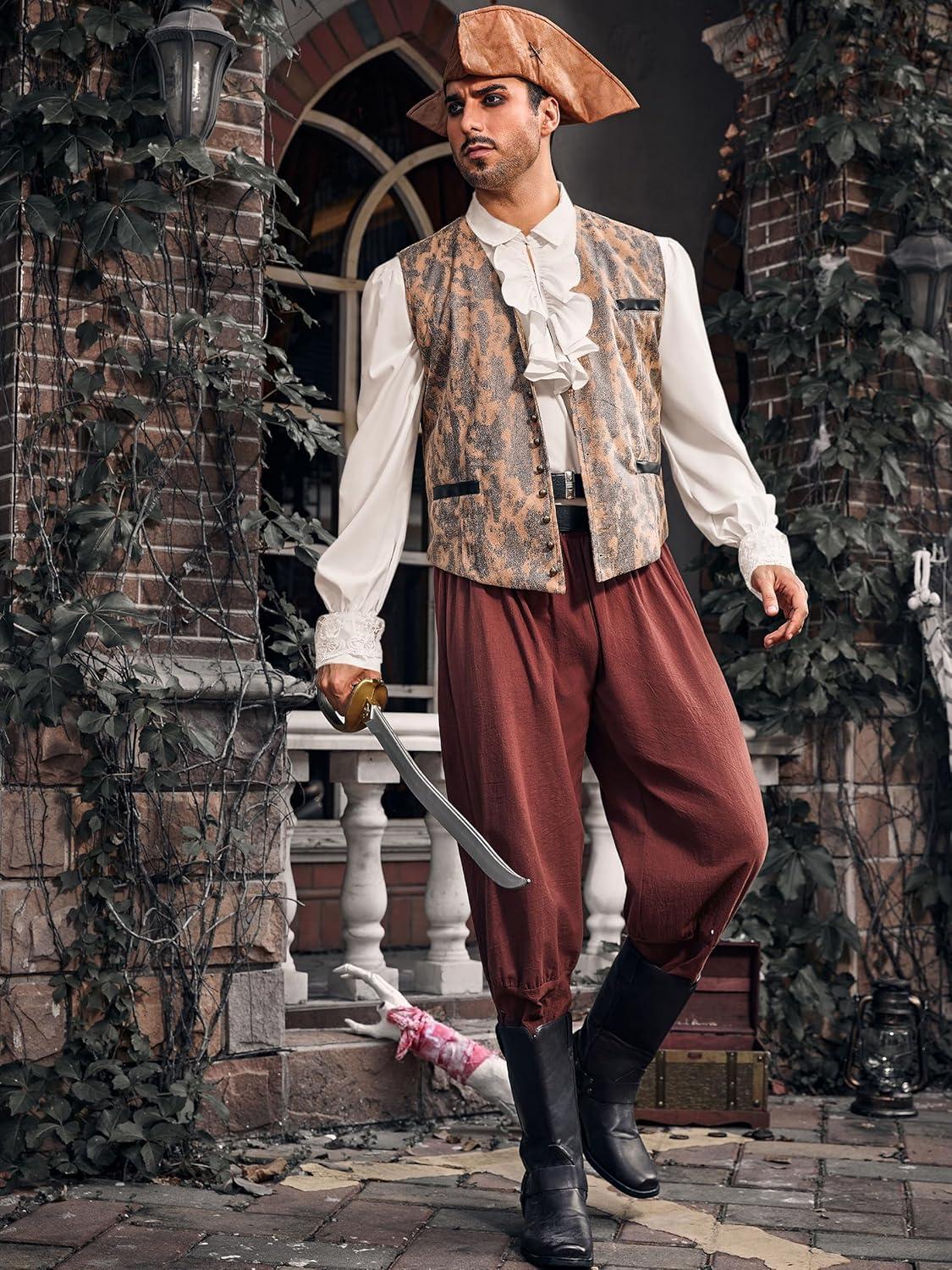 Runcati Mens Pirate Shirt Ruffle Victorian Renaissance Steampunk Vampire Poet Shirts Medieval Halloween Costume(01 White)