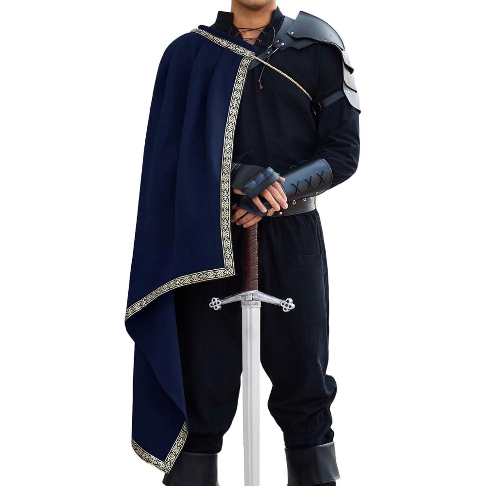 Runcati Mens Renaissance Shawl Half Shoulder Cape Medieval Samurai Cloak LARP Warrior Ren Faire Halloween Costume(Navy Blue)