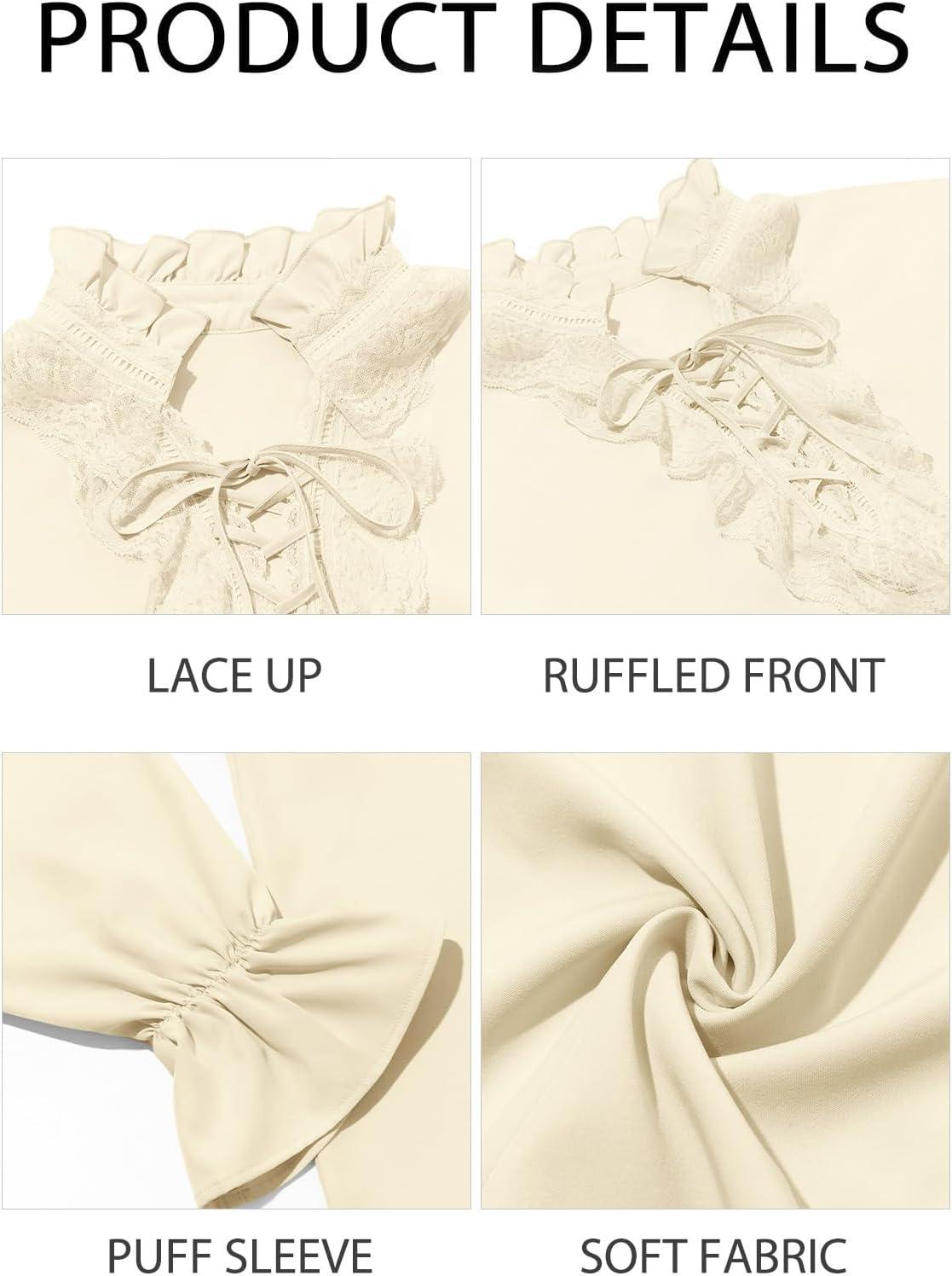 Runcati Mens Ruffle Pirate Shirts Lace Medieval Renaissance Vampire Poet Shirt Gothic Steampunk Victorian Costume(Beige)
