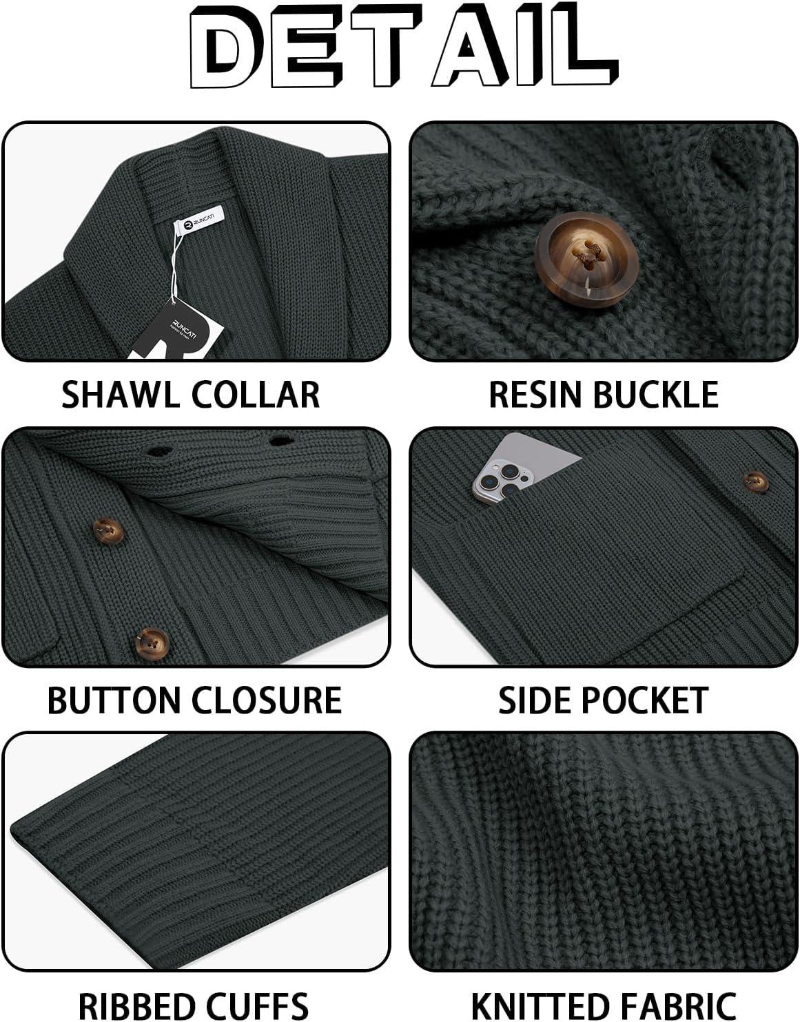 Runcati Mens Shawl Collar Cardigan Sweater Button Down Ribbed Knit Sweaters Chunky Casual Cardigan with Pockets(Dark Grey)