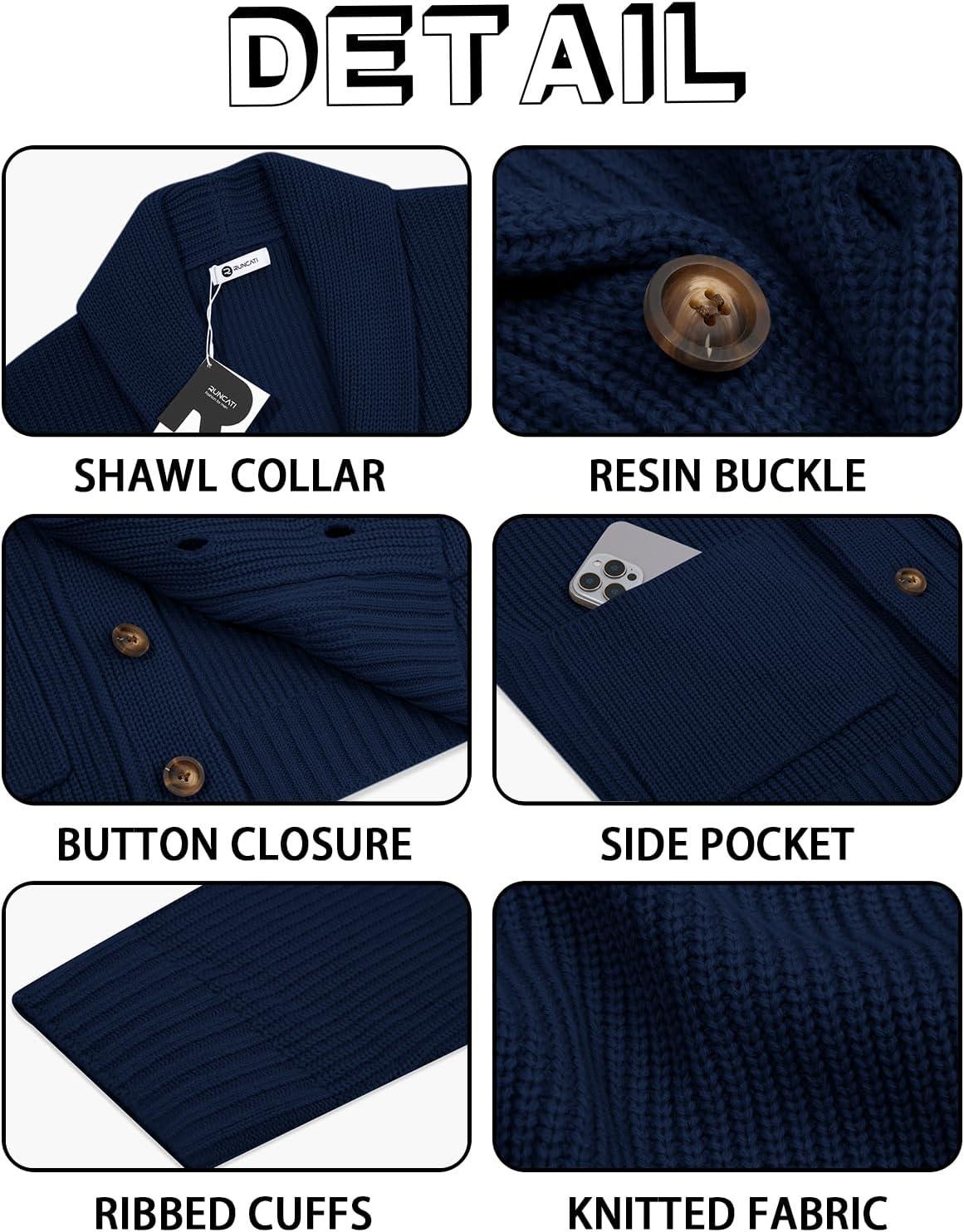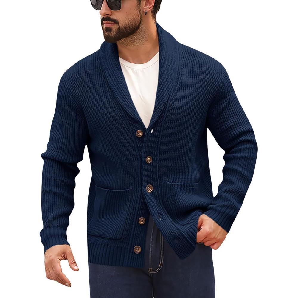 Runcati Mens Shawl Collar Cardigan Sweater Button Down Ribbed Knit Sweaters Chunky Casual Cardigan with Pockets(Navy)