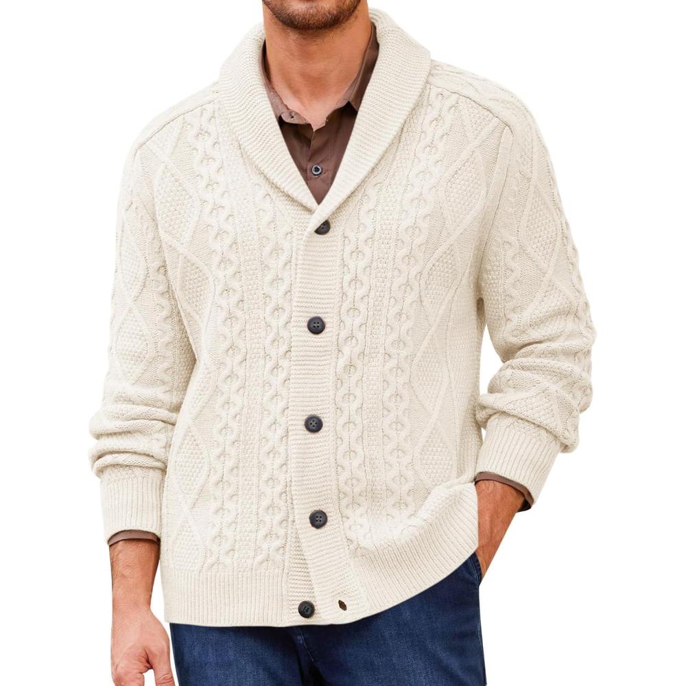 Runcati Mens Shawl Collar Cardigan Sweater Cable Knitted Button Down Sweaters Chunky Fall Winter Outwear(Beige)