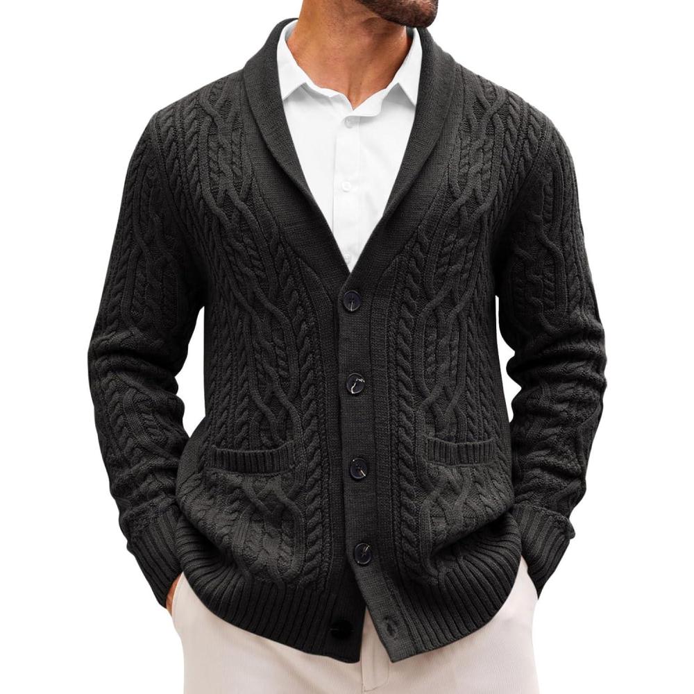 Runcati Mens Shawl Collar Cardigan Sweater Casual Cable Knit Button Down Winter Chunky Ribbed Sweaters(Black)