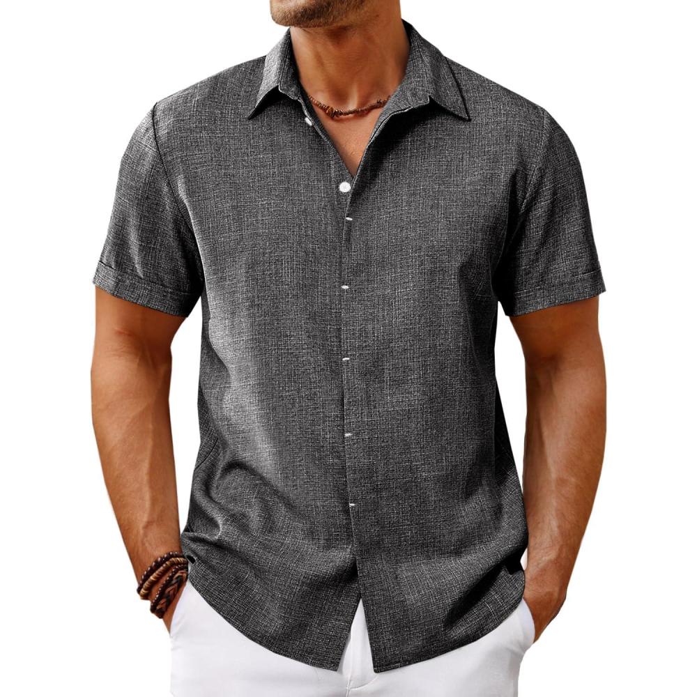 Runcati Mens Short Sleeve Linen Shirts Button Down Casual Texture Summer Beach Wedding Tops(Dark Gray)