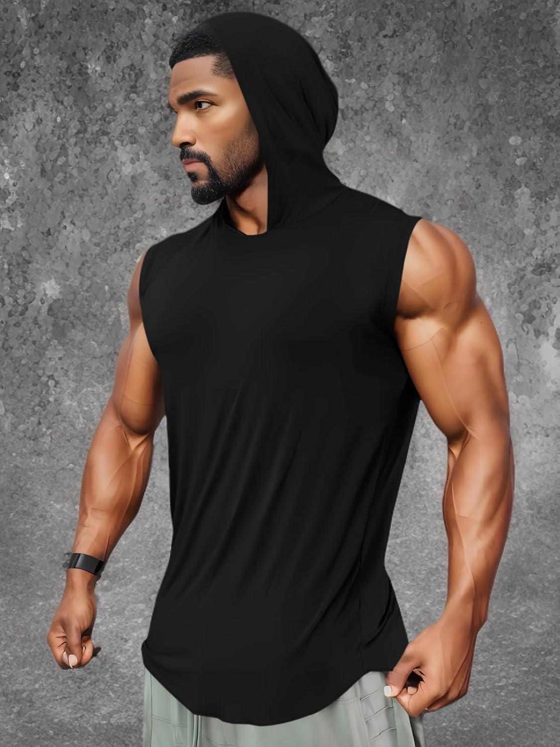 Runcati Mens Sleeveless Hoodies Workout Hooded Tank Tops Muscle Gym Bodybuilding Fitness Training T Shirts(Black)