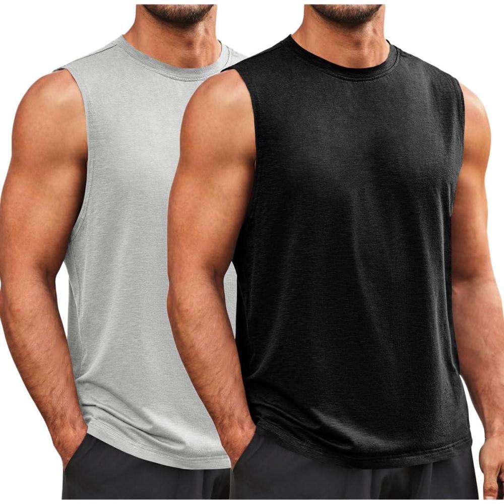 Runcati Mens Sleeveless Tank Tops Workout Athletic Muscle Shirt Casual Summer Beach T Shirts(Black/Light Gray)
