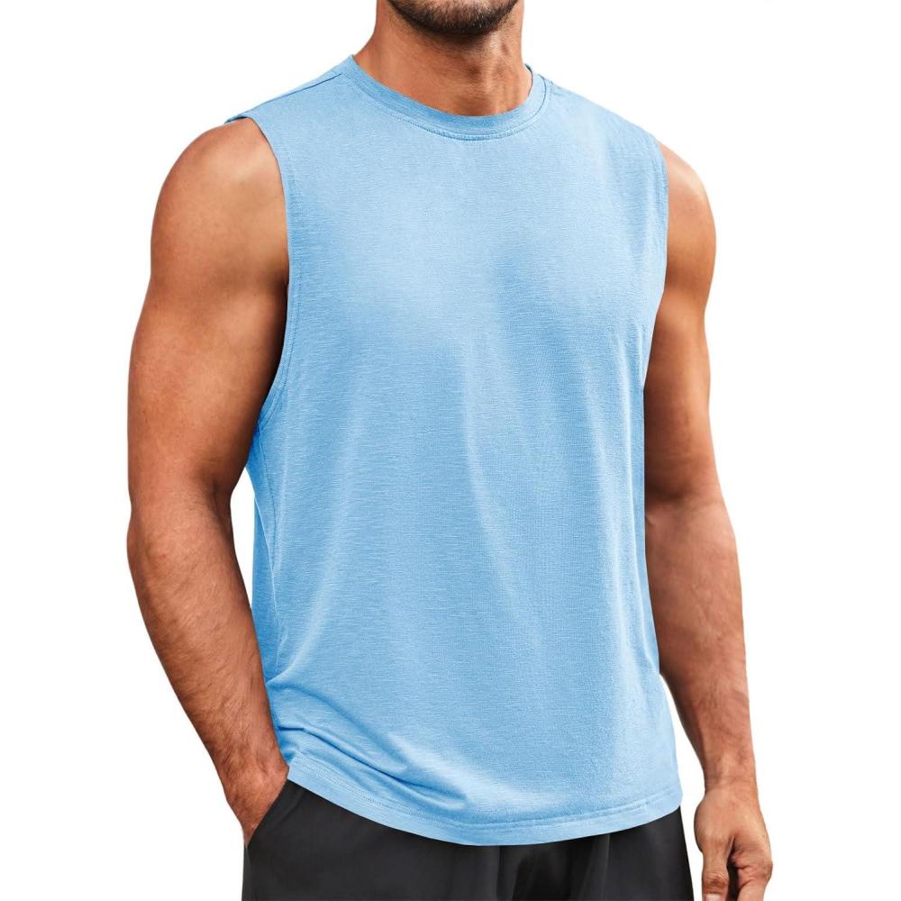 Runcati Mens Sleeveless Tank Tops Workout Athletic Muscle Shirt Casual Summer Beach T Shirts(Sky Blue)