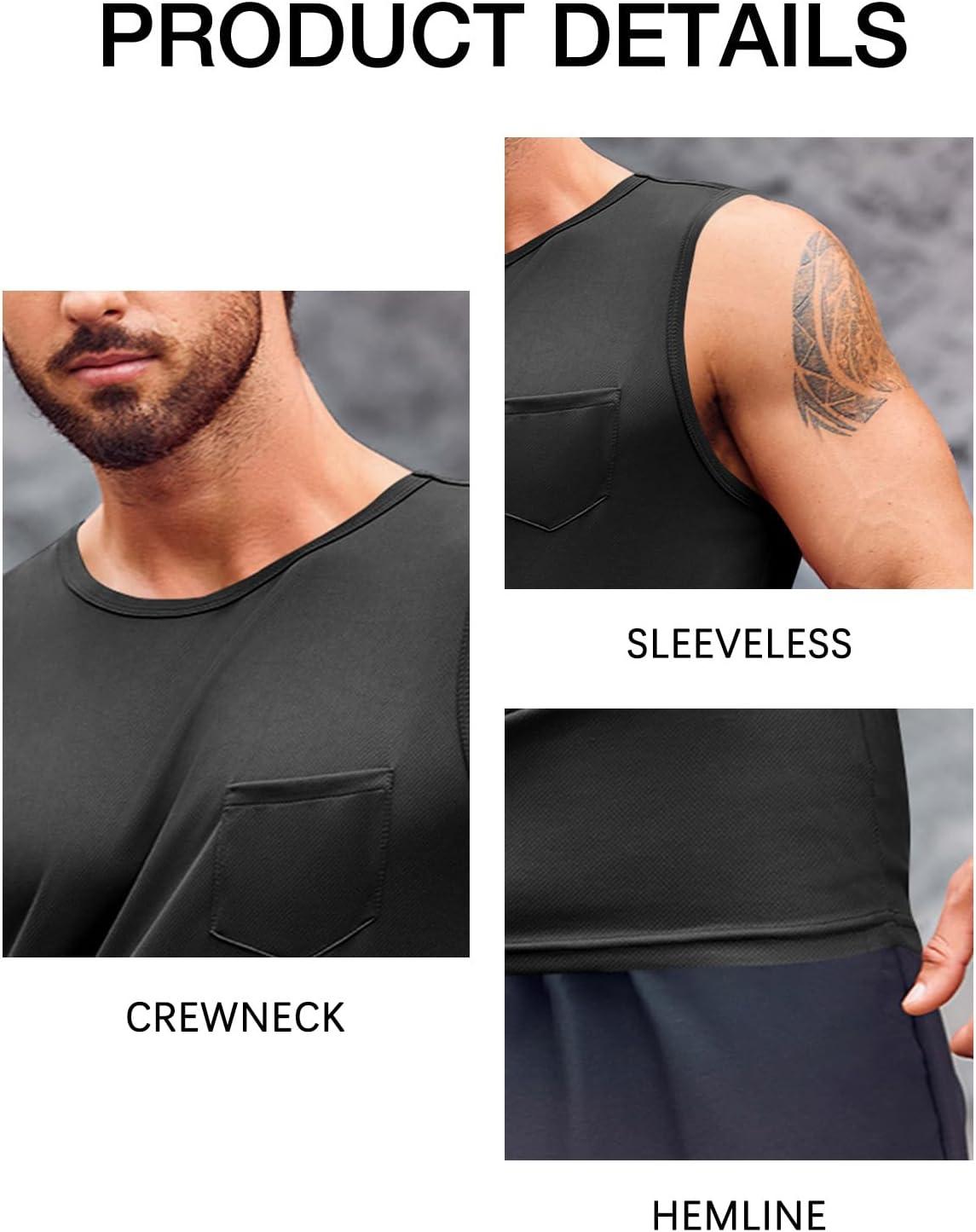 Runcati Mens Sleeveless Workout Tank Tops Athletic Muscle Gym T Shirts with Pockets(Black)