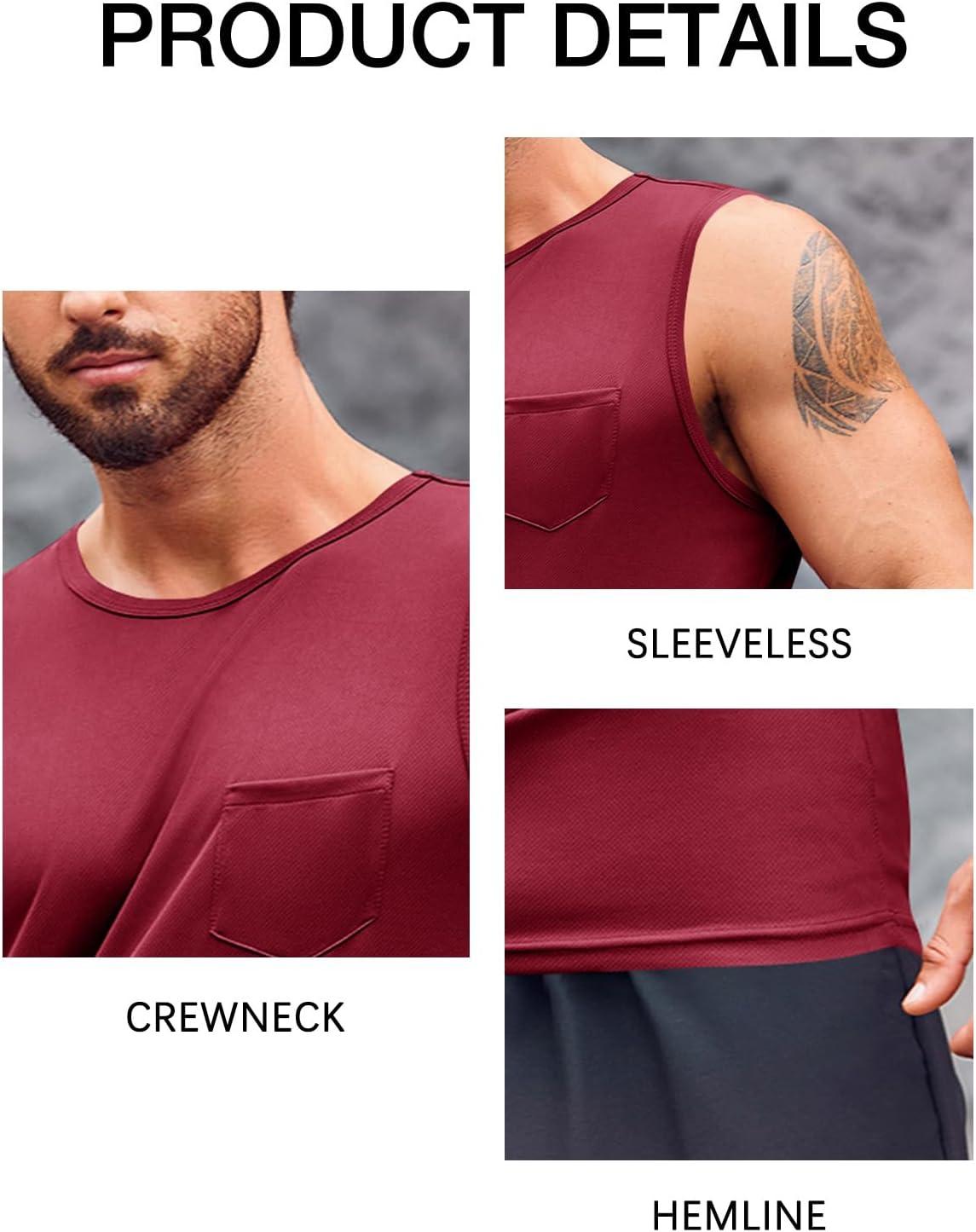 Runcati Mens Sleeveless Workout Tank Tops Athletic Muscle Gym T Shirts with Pockets(Wine Red)