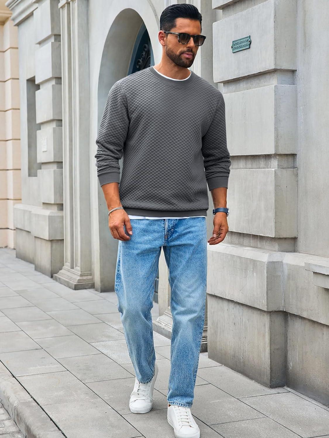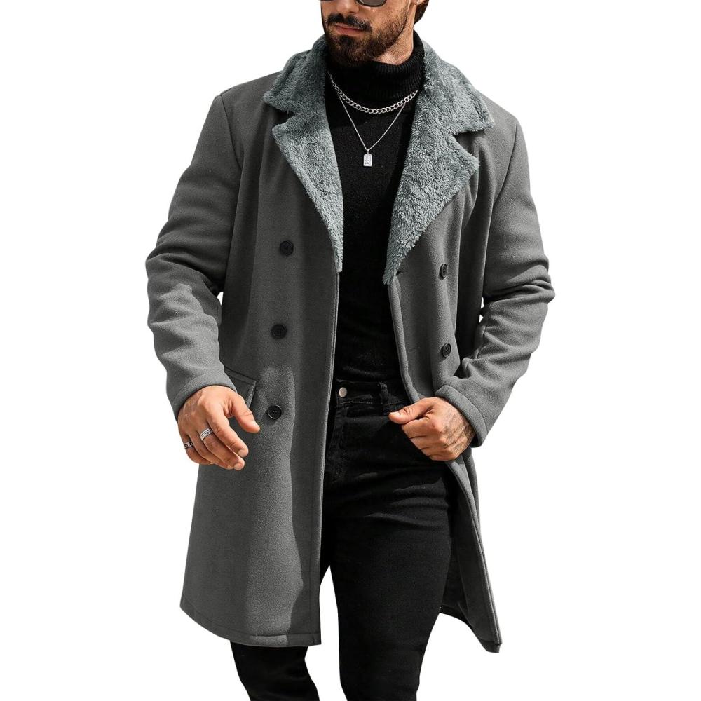 Runcati Mens Trench Coat Double Breasted Notched Collar Fleece Jacket Slim Fit Fall Winter Fuzzy Pea Coats Warm Overcoat(Dark Gray)