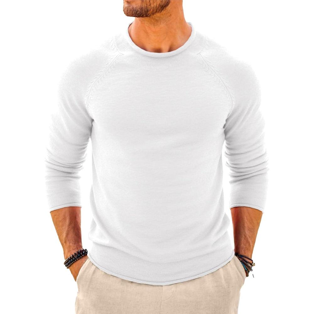 Runcati Mens Turtleneck Sweater Casual Knitted Pullover Raglan Sleeve Fall Winter Thermal Sweaters(White)