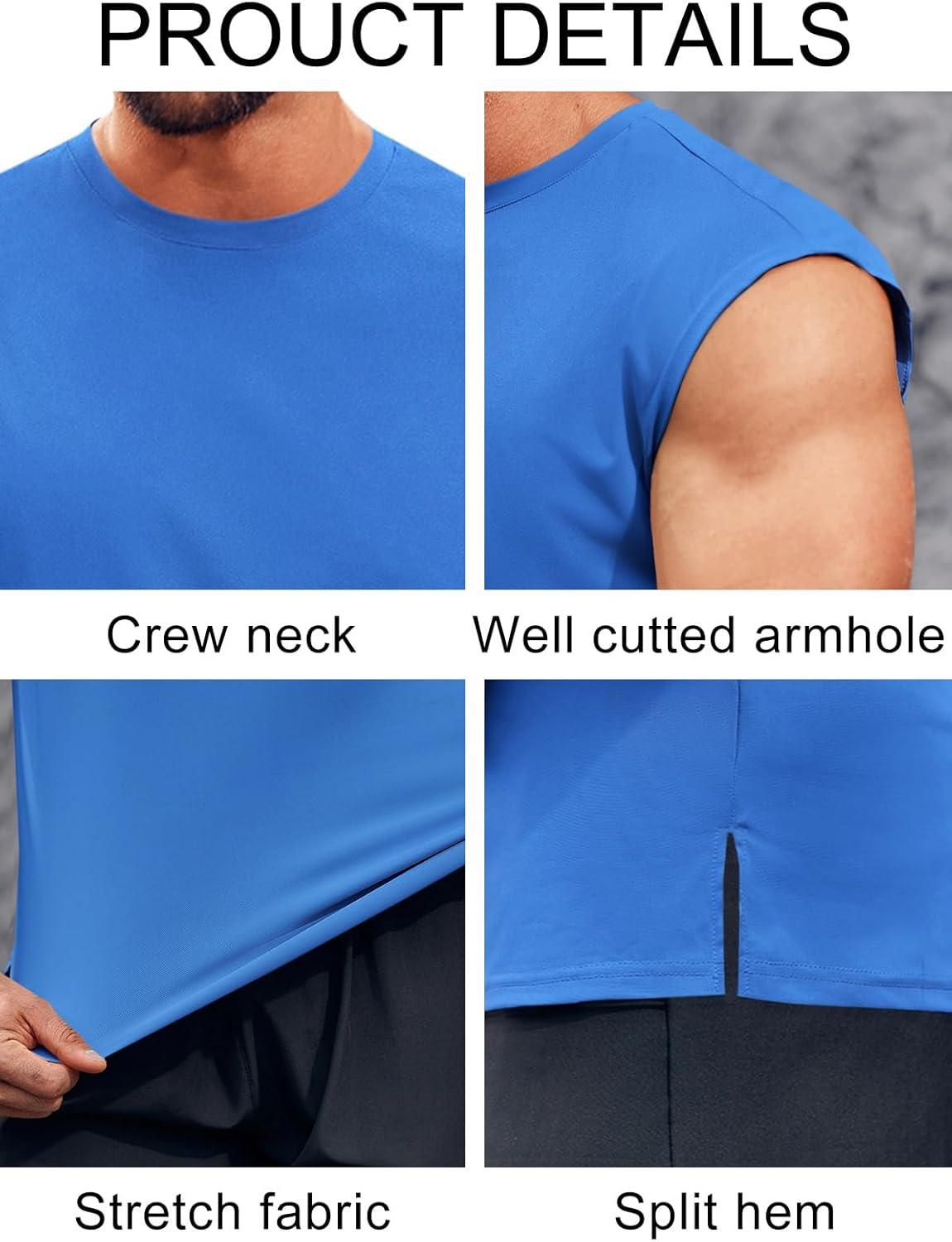 Runcati Mens Workout Tank Top Sleeveless Shirt Quick Dry Muscle Gym Bodybuilding Fitness Training T Shirts(Blue)