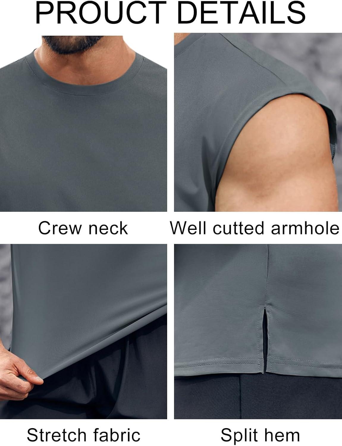 Runcati Mens Workout Tank Top Sleeveless Shirt Quick Dry Muscle Gym Bodybuilding Fitness Training T Shirts(Dark Grey)