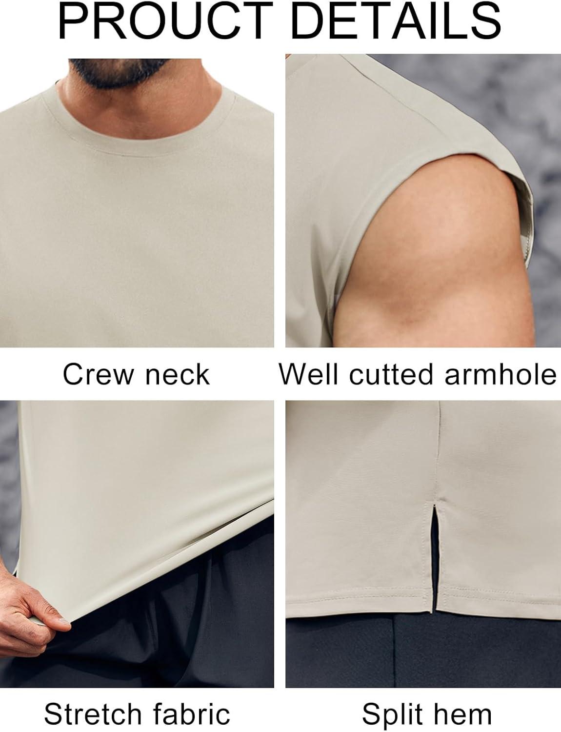 Runcati Mens Workout Tank Top Sleeveless Shirt Quick Dry Muscle Gym Bodybuilding Fitness Training T Shirts(Khaki)