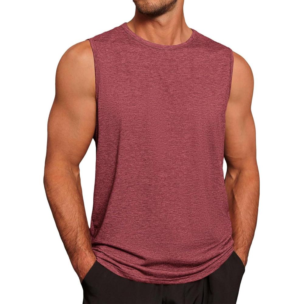 Runcati Mens Workout Tank Tops Sleeveless Gym Muscle Athletic T Shirts Casual Summer Beach Tops(Burgundy)